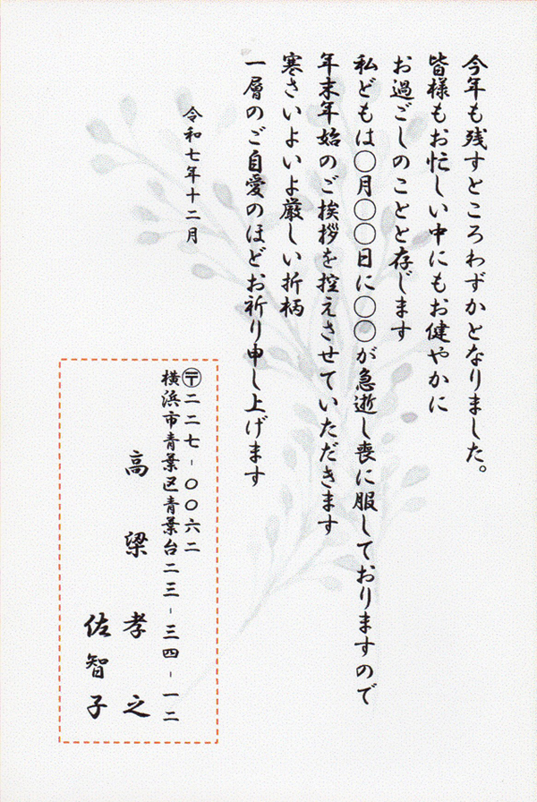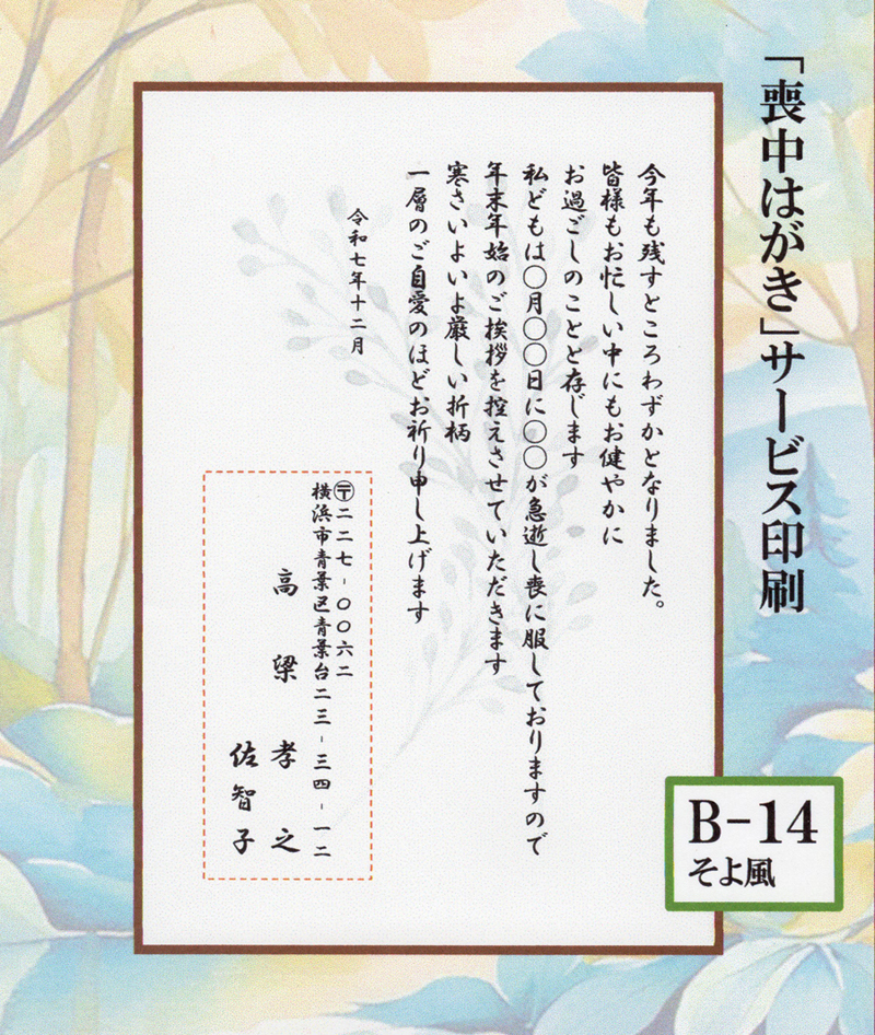 ★「喪中はがき」私製はがきサービス印刷のご案内です。