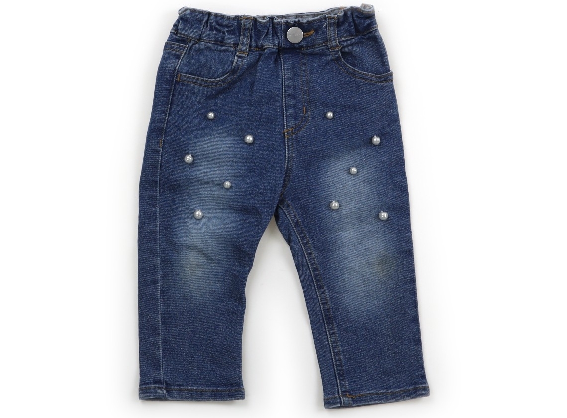 ストレッチデニム素材。ネームタグが一部切られています。ウエストは総ゴムです。両膝が薄汚れています。色褪せ・洗いざらし感があります。