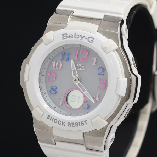 稼働 良品 カシオ/ベビーG QZ BGA-1100GR デイト デジアナ シルバー文字盤 レディース腕時計 YUM 2000000 NSK