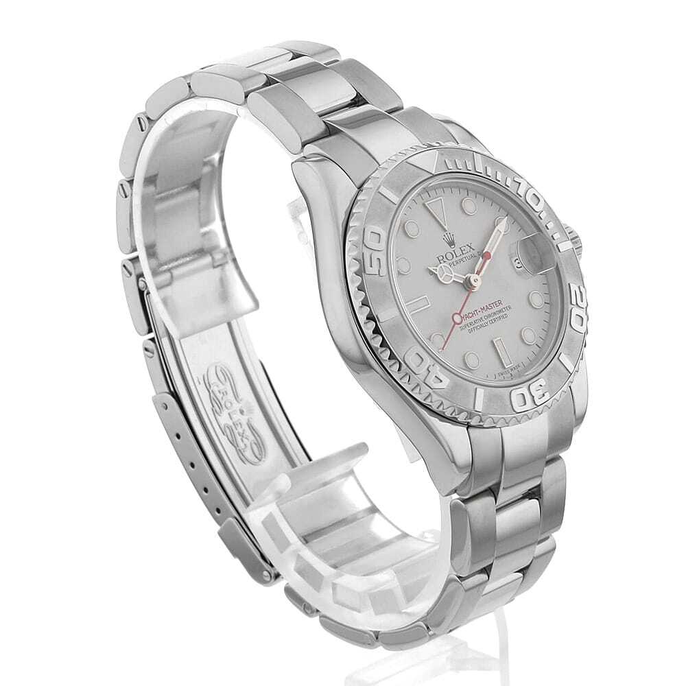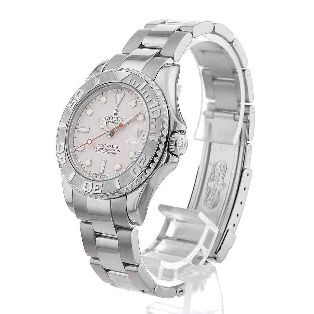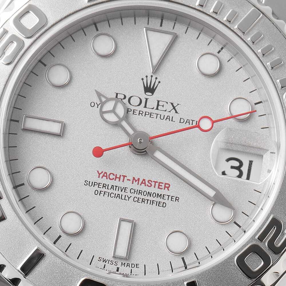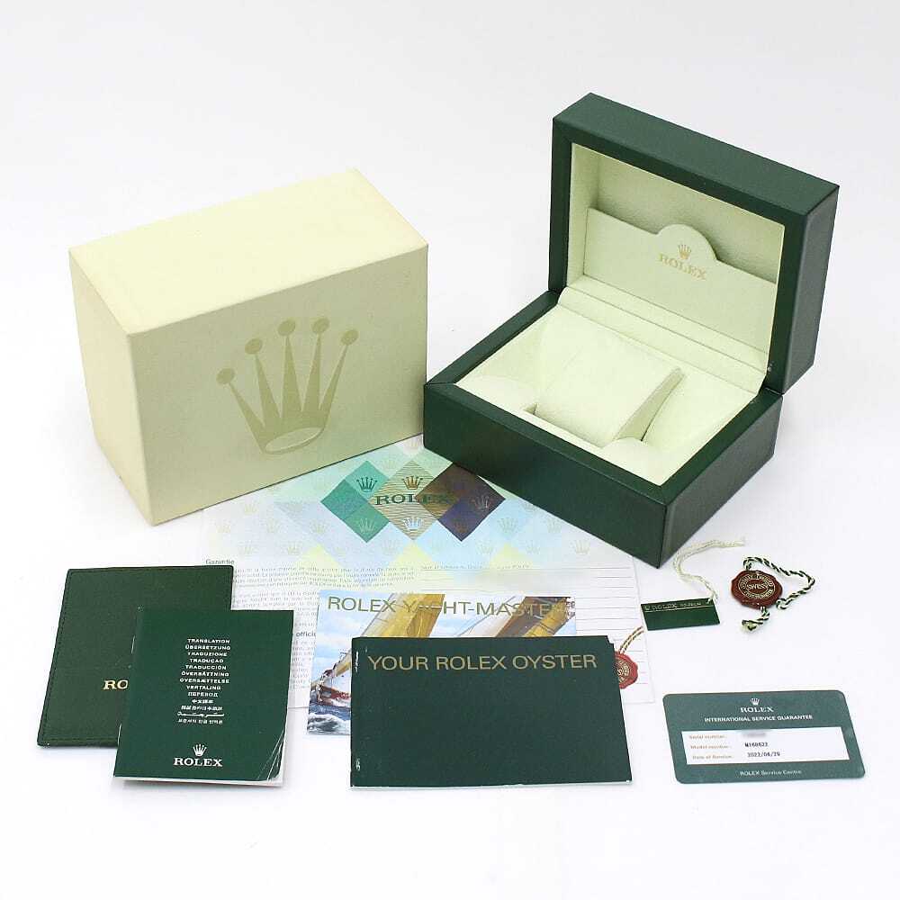 | モデル情報 | ヨットマスターは自家用クルーザーやヨットを所有し、クルージングを楽しむセレブな方々をターゲットにした高級スポーツウォッチです。水深100mの防水設計がされており、回転ベゼルは船上での経過時間を計ることが出来ます。 ムーブメントには毎時2万8800振動数を誇るC.O.S.C認定クロノメーター自動巻きCal.2235を搭載。スポーティかつラグジュアリーな時計をお探しの方にお薦めのモデルです。 |