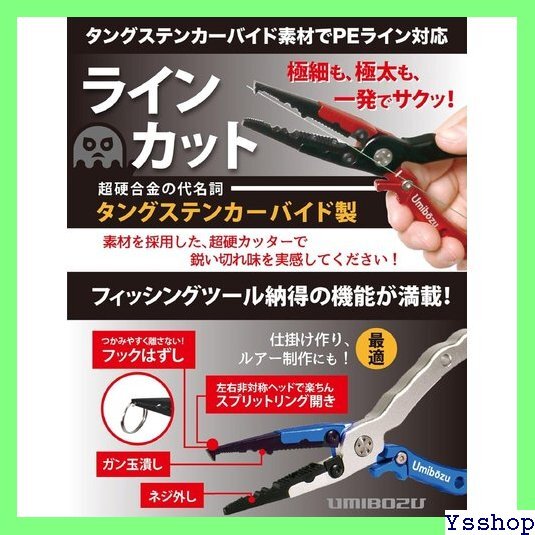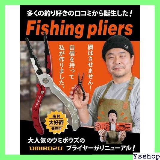 Umibozu ウミボウズ フィッシングプライヤー 釣り ペンチ 針外し 防錆 ラインカッター 軽量 カラビナロープ付き 1.レッド&ブラック 26
