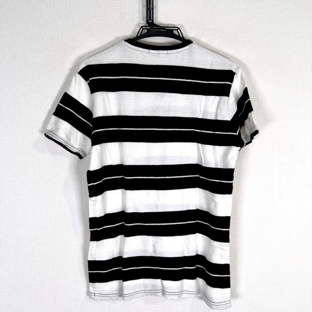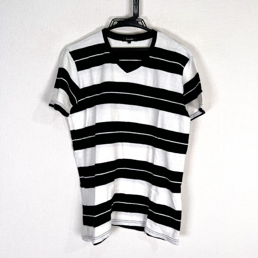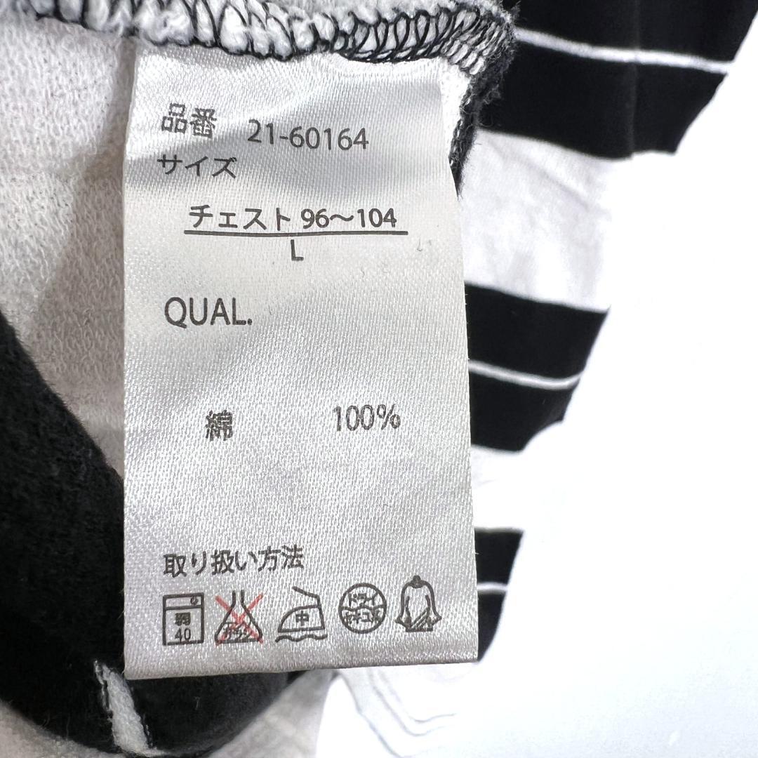 【Freude】フロイデ しまむら 黒×白 ボーダー 半袖 Tシャツ カットソー トップス 男性用 メンズ Lサイズ【a025】