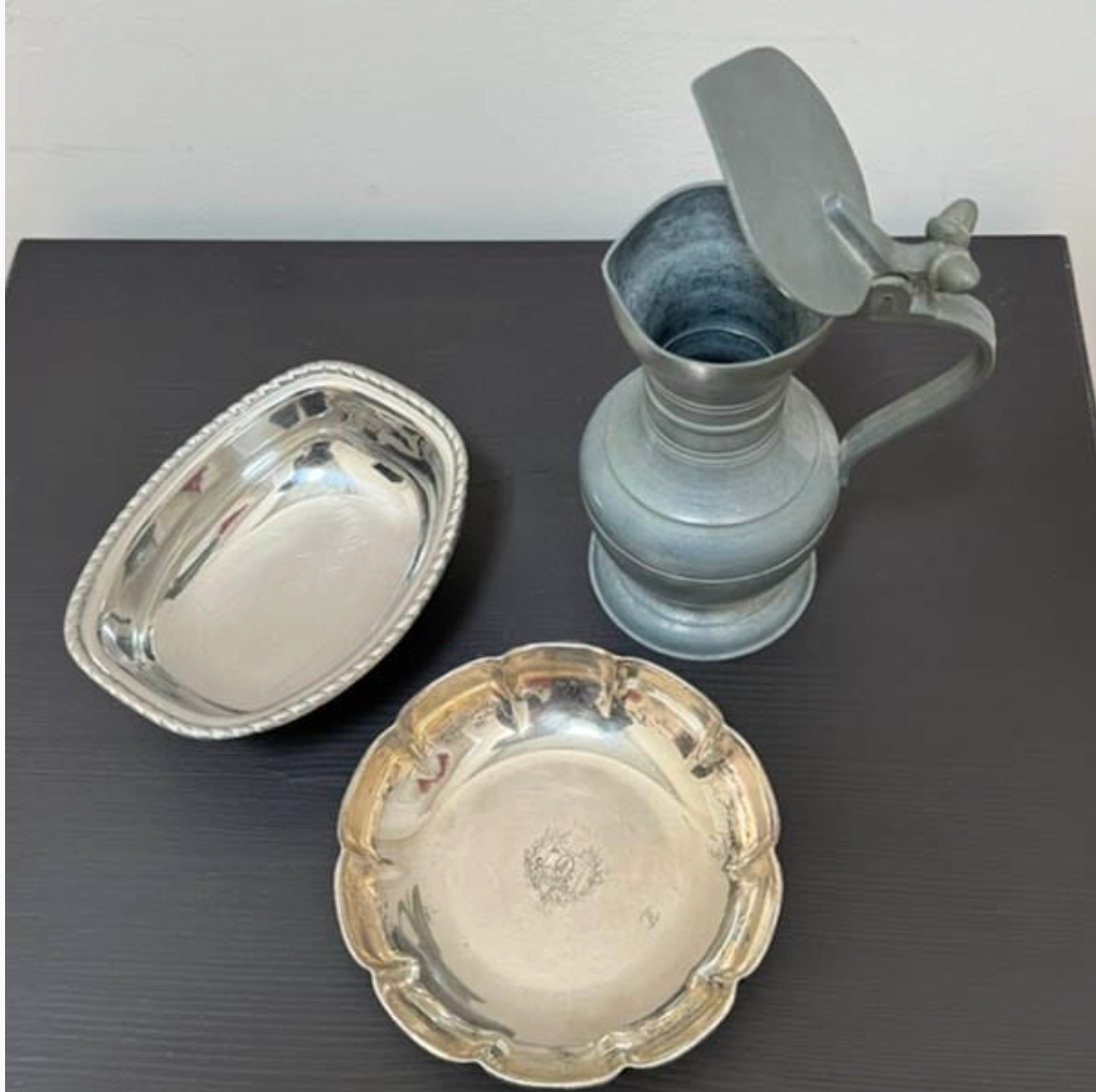 シルバートレイ小物入れ レア物ヨーロッパアンティークシルバープレート エタンピューター 水差しピッチャー インテリア雑貨蚤の市買い付け