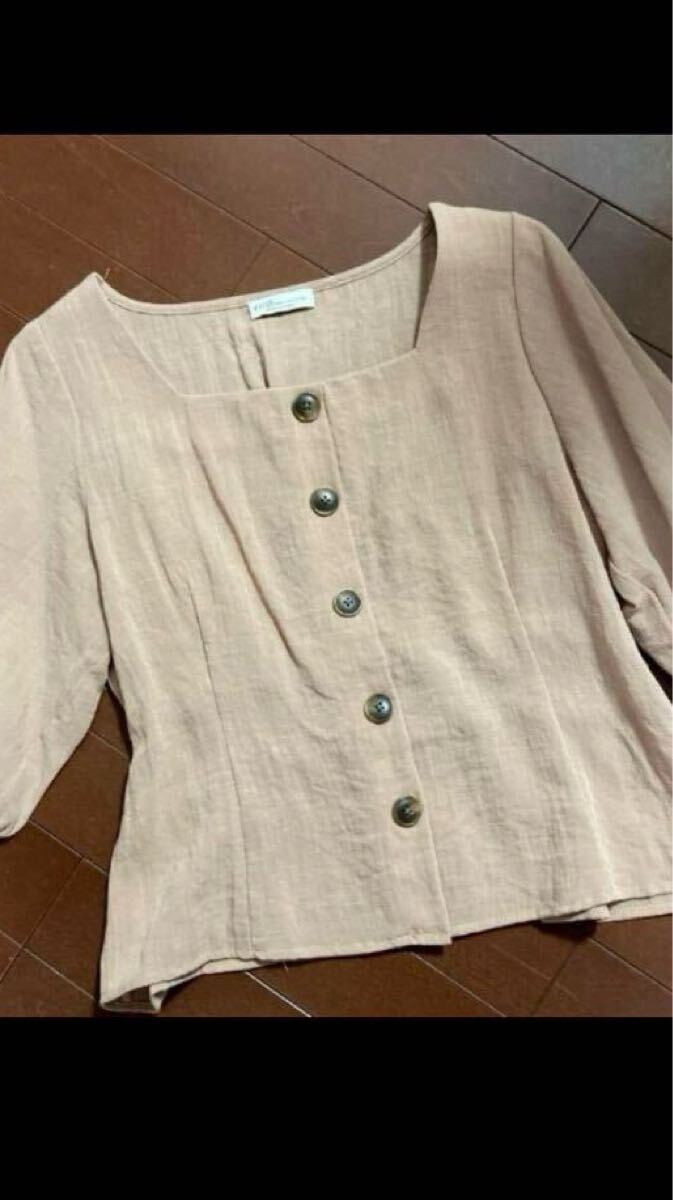 デコルテをすっきりと見せるスクエアネックのブラウス。