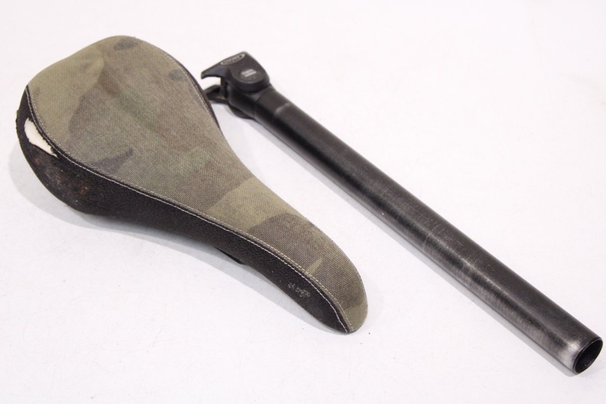 | 外観補足 | 汚れや傷等強めの使用感がございます。 座面表裏に目立つ色あせ、汚れ、スレがございます。 座面に破れがございます。 レールにクランプ跡がございます。 シートポストに目立つクランプ傷がございます。 ※詳しくは画像をご覧くださいませ。 |