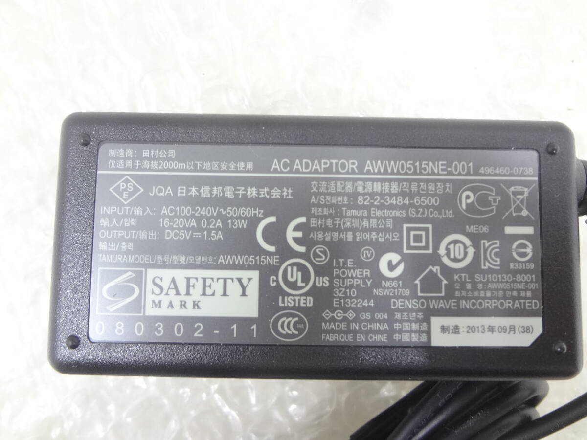 5個セット★ハンディターミナル用 ACアダプター AWW0515NE-001 5V 1.5A 約4.0mm 電源ケーブル付き 未使用品