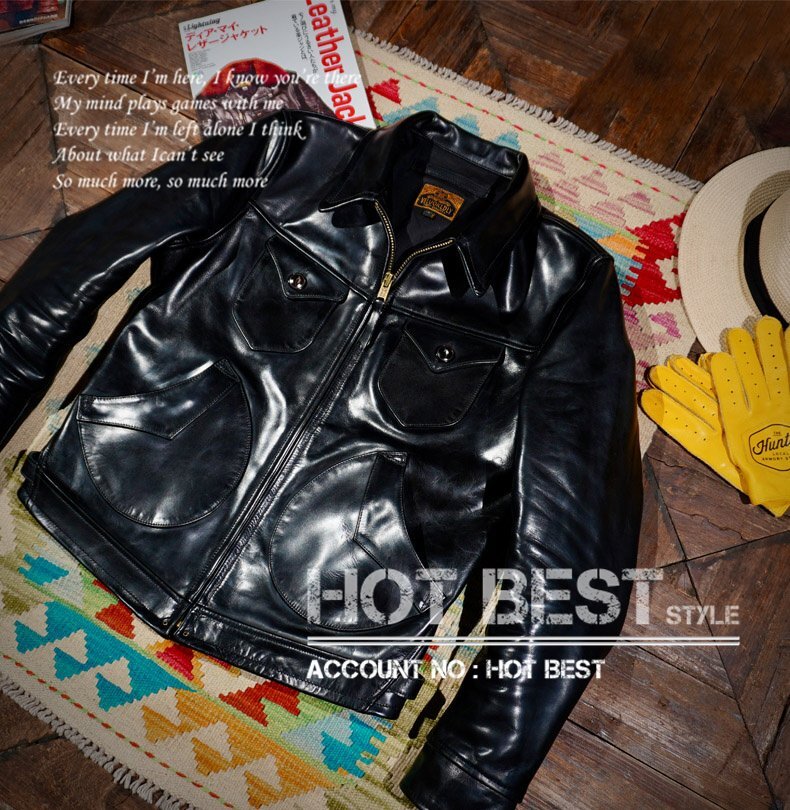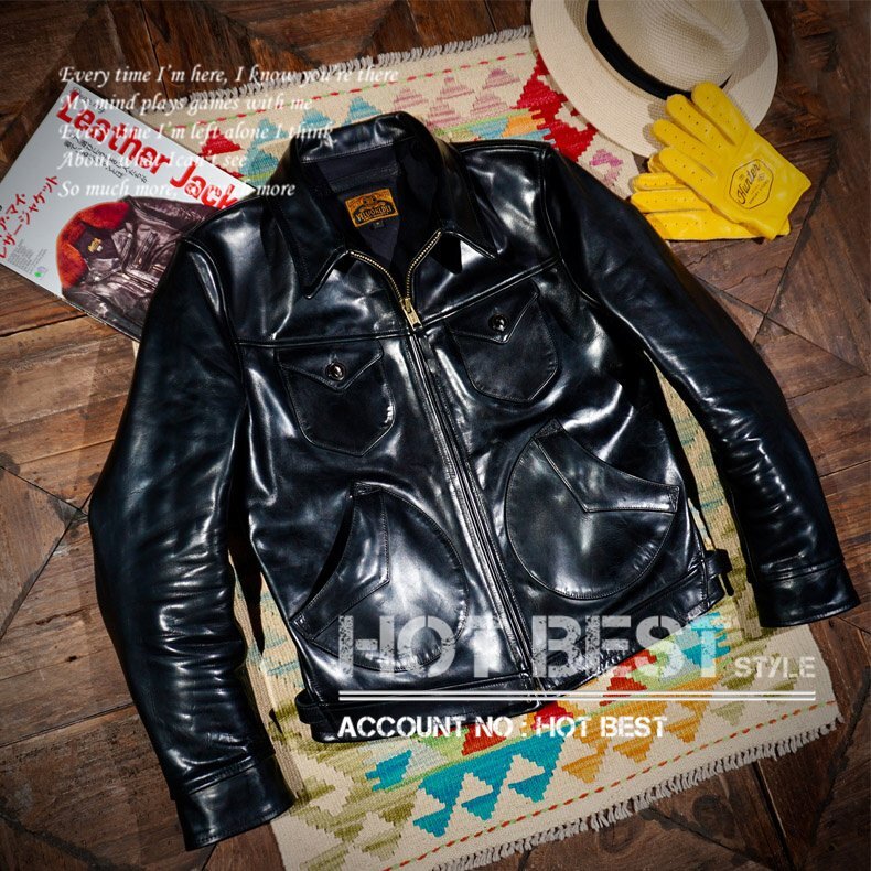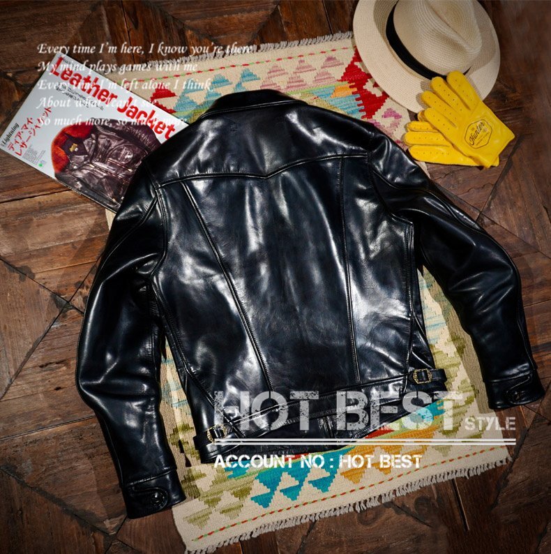 1.5mm 黒芯ホースハイド 30'sスタイル メンズ 革ジャンシングルライダース レザージャケット トスカーナ植物鞣し革 馬革 Y1218/S