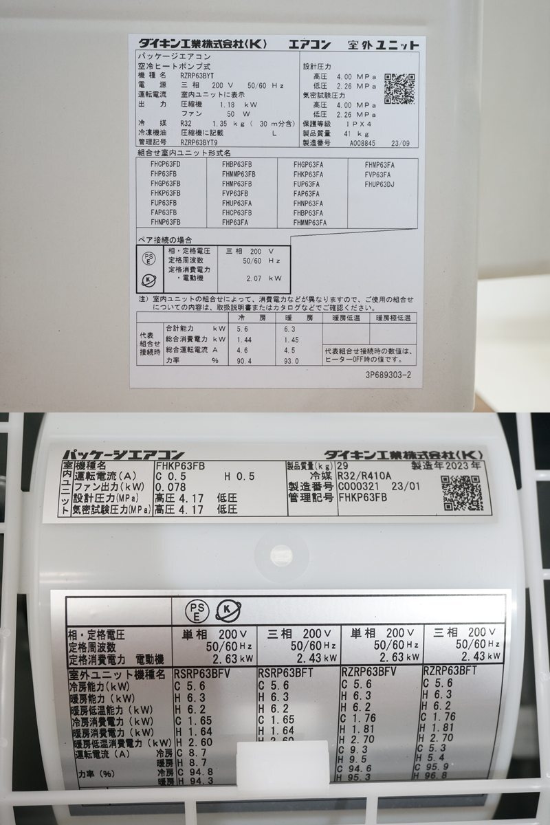 ■東ハ:【ダイキン】業務用エアコン EcoZEAS 天井埋込カセット形 2.5馬力 FHKP63FB RZRP63BYT 2023年 ワイヤードリモコン BRC1G4 オフィス■ 【セット構成】 ・セット型番:SZRK63BYT ・室内機:FHKP63FB×1 ・パネル:BYKP80MAF×1 ・室外機:RZRP63BYT×1 ・リモコン:BRC1G4×1(ワイヤードリモコン) ☆室内機 FHKP63FB 取扱説明書は→取扱説明書ダウンロードへ ☆室外機 RZRP63BYT 取扱説明書は→取扱説明書ダウンロードへ ☆ワイヤードリモコン BRC1G4 取扱説明書は→取扱説明書ダウンロードへ 【主な仕様】 ・天吊形 ・電源タイプ:三相200V ・能力:2.5馬力 P63 ・定格冷房能力:5.6kW ・定格暖房能力:6.3kW 【サイズ/重量】 ・室内機:高さ245(215)×幅1,380×奥行658 mm/ 29+6kg ・室外機:高さ610 × 幅795 × 奥行300 mm / 41kg 当方で確認出来る限りでは使用時にペット飼育などの環境はありませんでした。 取外時ポンプダウン済ですが、万全を期してもガスが不足する場合があります。 ガスチャージなどが必要な場合もありますので、動作保証無の商品としてご了解いただいた上でご入札下さいませ。 テープで可動部や付属品を固定している場合がありますが、可動部ジョイント部の破損などはありません。 中古のお品となります。 付属品は写真にあるものが全てです。 使用に伴うシミヨゴレ、キズ・ケズレが複数ございます。 商品画像をよくご確認の上、ご参加ください。 [管理No.25091108R1] |