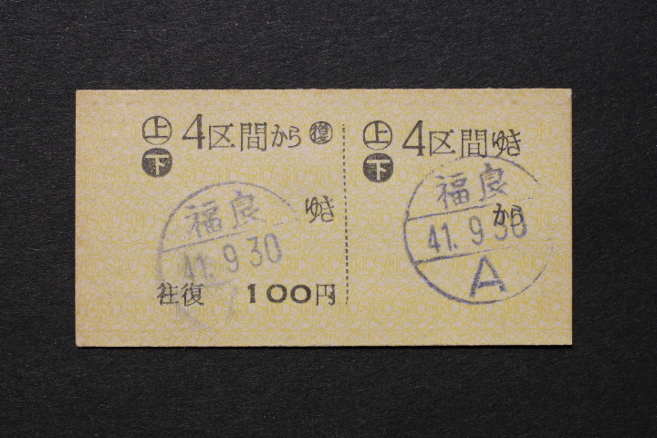 淡路交通 往復乗車券 福良から 4区間ゆき 100円 最終日