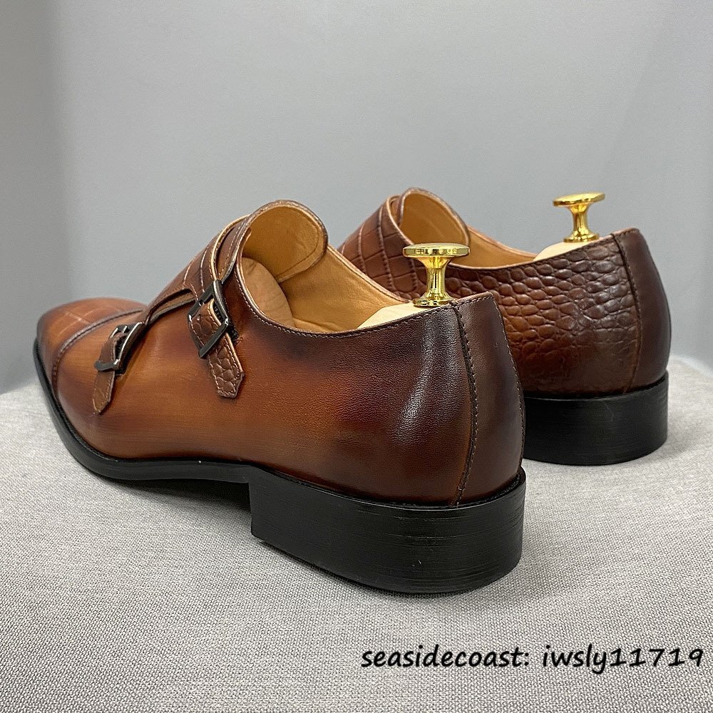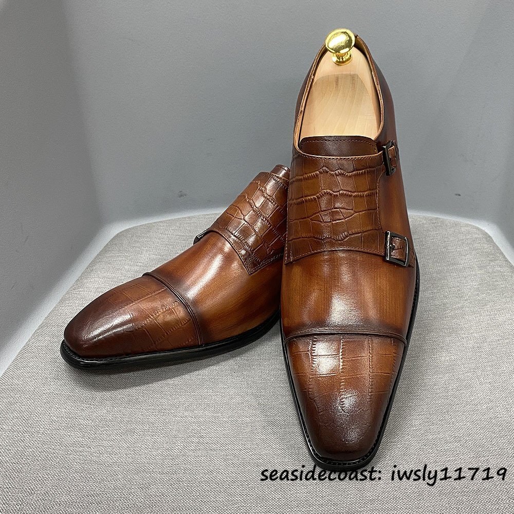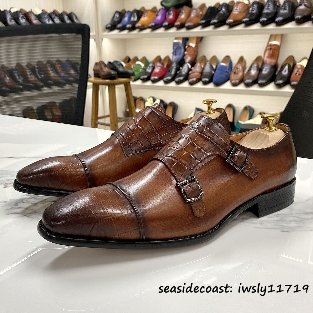 定価9万超◆最高級 メンズ 本革 レザーシューズ ビジネスシューズ 牛革 革靴 職人手作り 紳士靴 ドレスシューズ 冠婚葬祭 ブラウン 27.5cm
