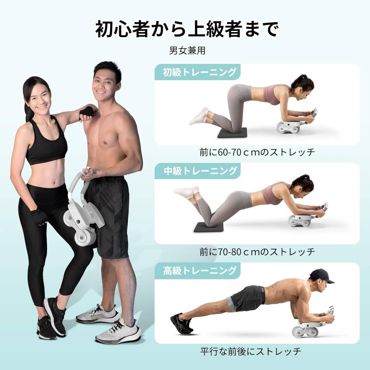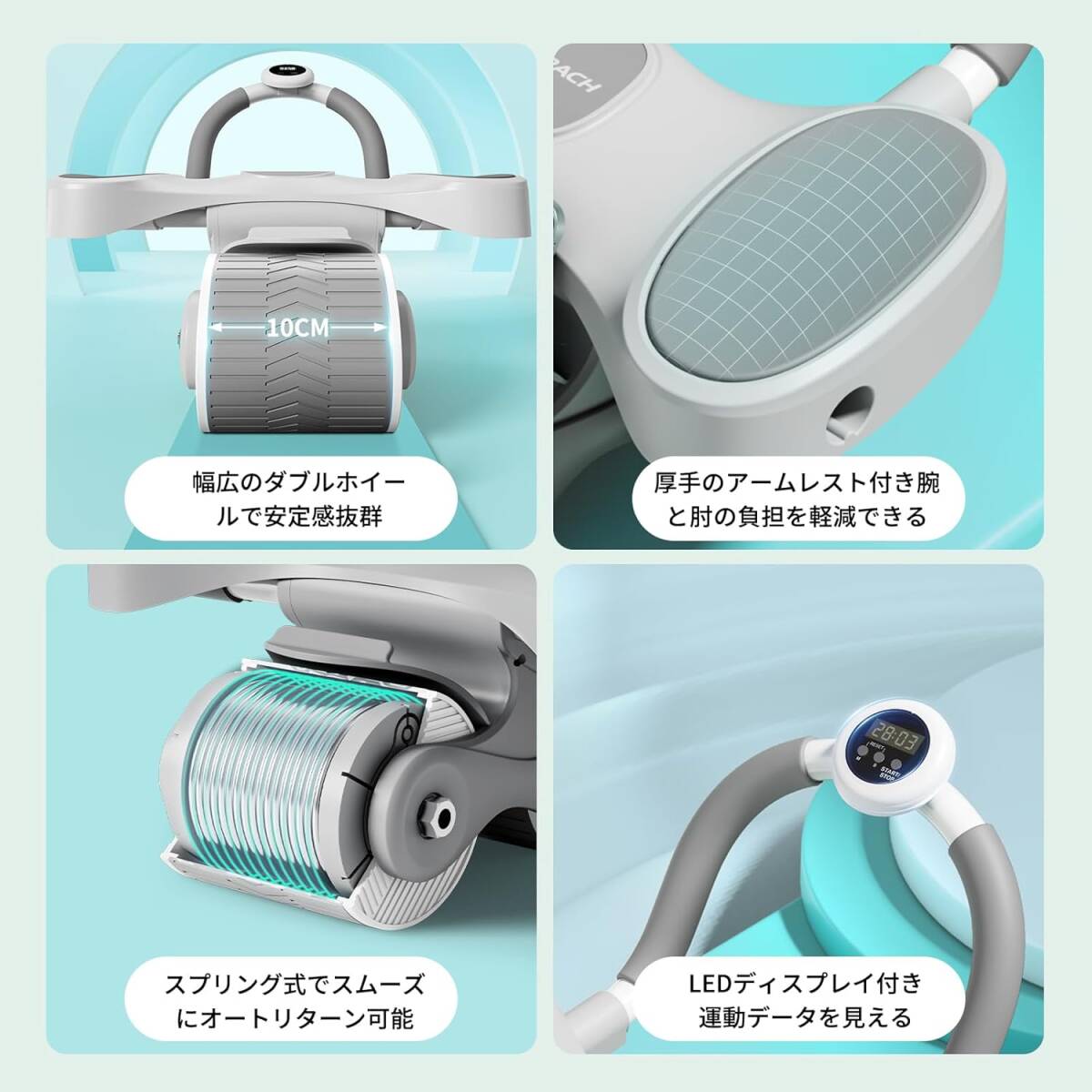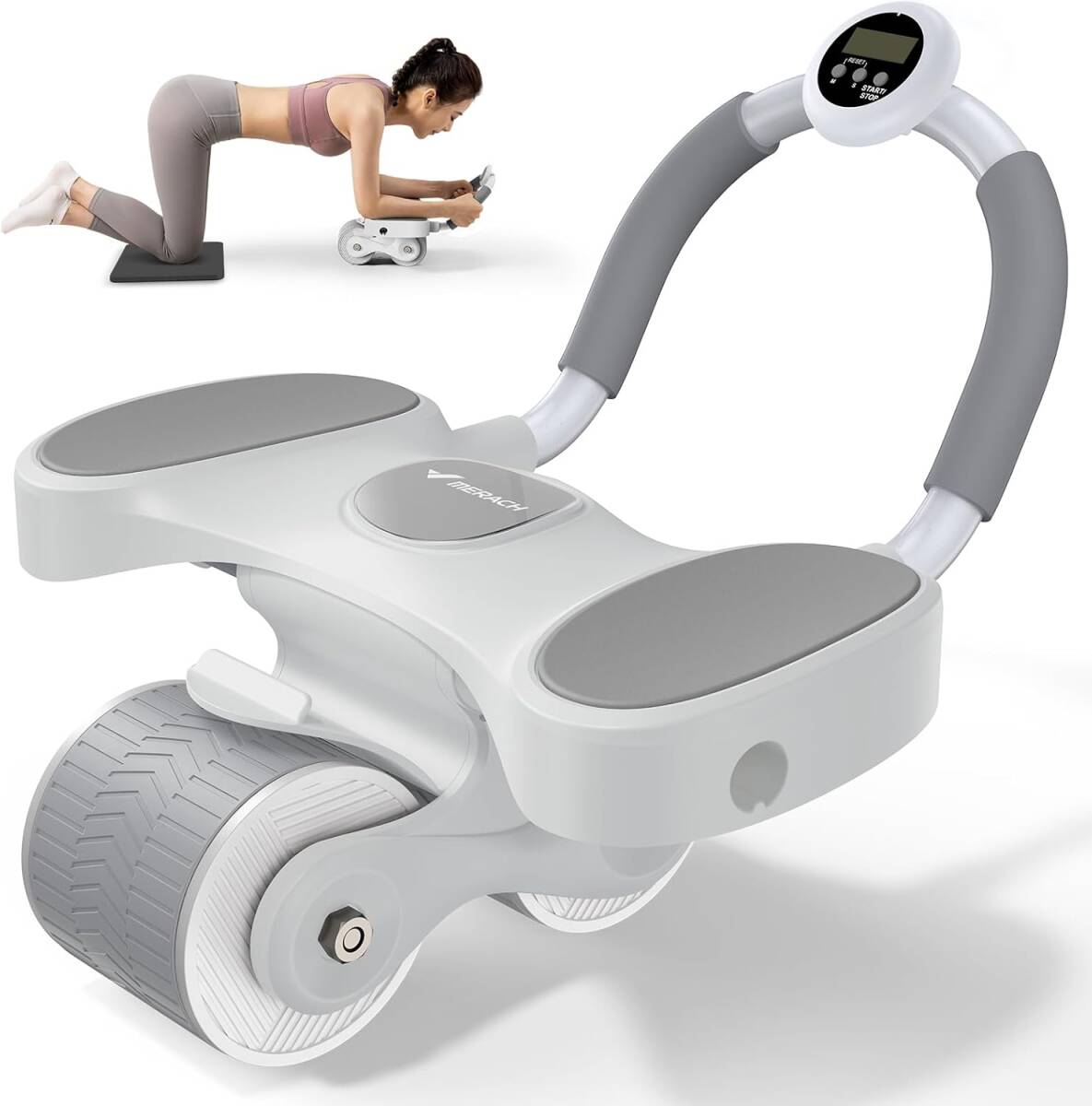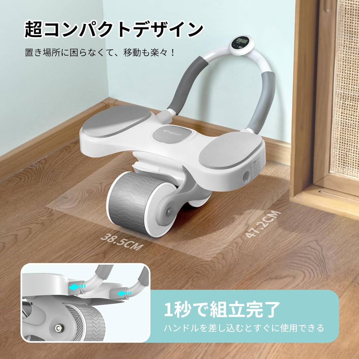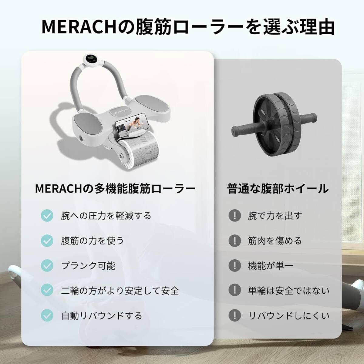 グレー、ホワイト色 MERACH (メリック) 腹筋ローラー 腹筋ホイール 膝マット付き プロ 腹筋 ローラー 静音 二輪 高耐久性