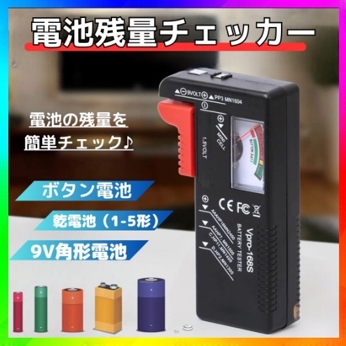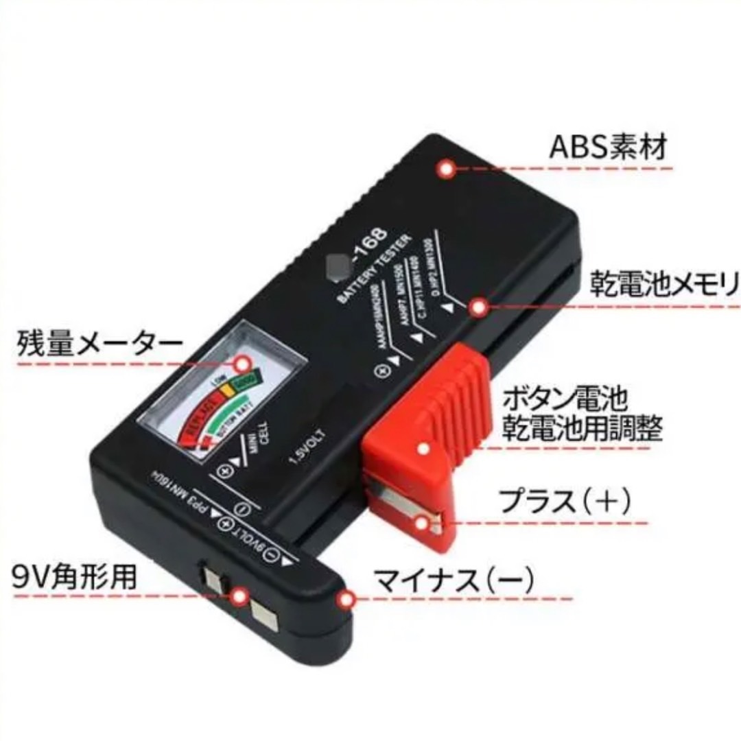 電池 チェッカー テスター 測定器 バッテリー 乾電池 ボタン 残量 携帯 黒