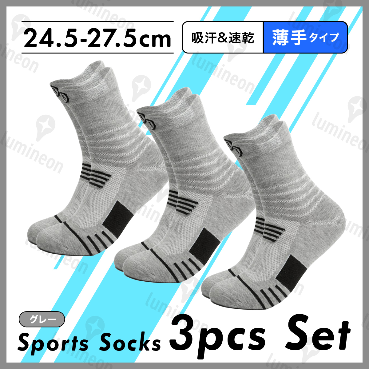 靴下 メンズ ハイ ソックス 春 夏 くつした 3本 セット 靴 紳士 滑り止め スポーツ ゴルフ 野球 バスケットボール サッカー 登山 g117m 1