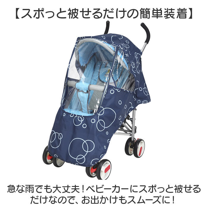 | 商品説明 | ・・【クリア窓×通気穴付きで安心☆】 ・雨の日のお出かけを快適にしてくれる、ポップで可愛い「レインカバー ベビーカー用」が登場。 ・【スポっと被せるだけの簡単装着】 ・急な雨でも大丈夫!ベビーカーにスポっと被せるだけなので、お出かけもスムーズに! ・【クリア窓付きでベビーも安心】 ・大きなクリア窓で、前も横も視界が良好◎お外がよく見える!ベビーの様子も見えるので安心。 ・【通気穴付きで、カバー内を快適に】 ・左右に通気穴を配置。カバー内の空気がこもらないので、快適な空間をキープできる。 ・【雨が止んだらオープンにできる!】 ・正面のクリア窓にはファスナーを採用。カバーをつけたままオープンにできるのがポイント。 ・【お出かけに便利なポケット付き】 ・ベビーカーの持ち手付近に、オープンポケットを2つ配置。スマホなどを入れられて便利! ・【専用の収納袋付きで使いやすい】 ・レインカバーを畳んで収納できる、収納袋付き!雨が降りそうな日は袋に入れて持ち歩き◎ ・【めくれ上がりを防止!】 ・ベビーカーの前側には、面ファスナーベルト付き。風を受けやすい前方のめくれ上がりを防止。 ・【いろんな形のベビーカーに対応】 ・被せるだけのシンプル仕様で、多くのベビーカーに装着可能。※サイズのご確認をお願いします。 ・【雨よけ以外にも活躍】 ・雨対策にはもちろん、防風、寒さ、ホコリなどからベビーをガードする使い方も◎ |