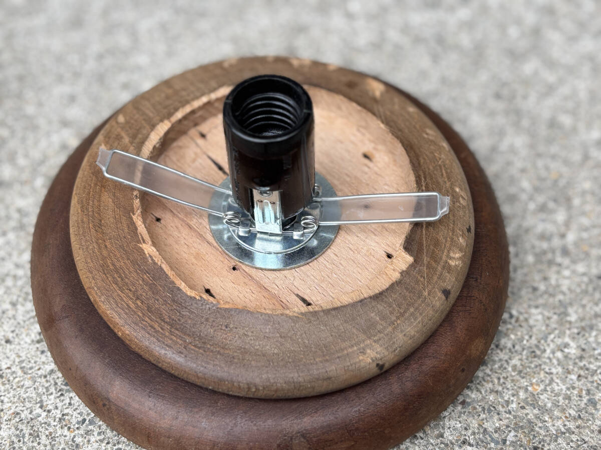 海外のシャンデリアは配線を直結することが多く、結線を隠すためのパーツで