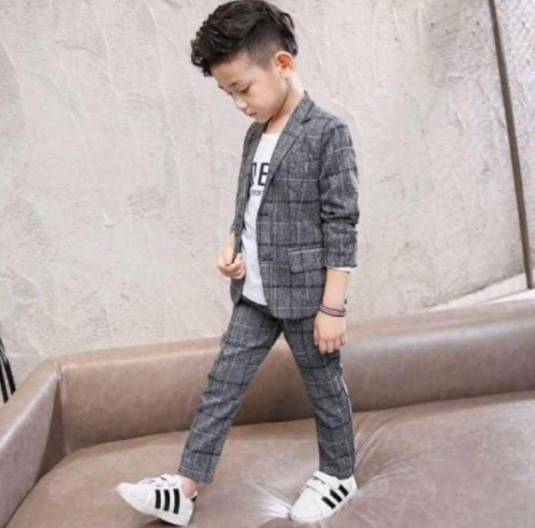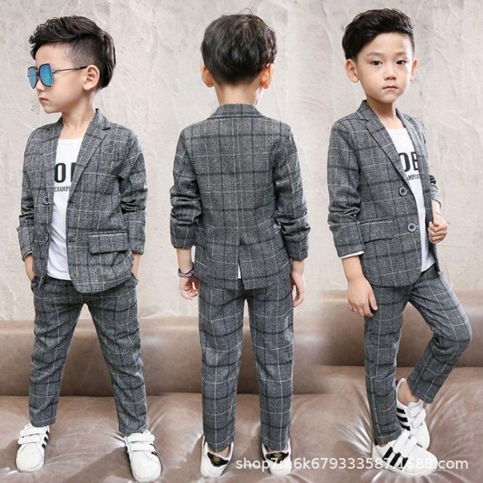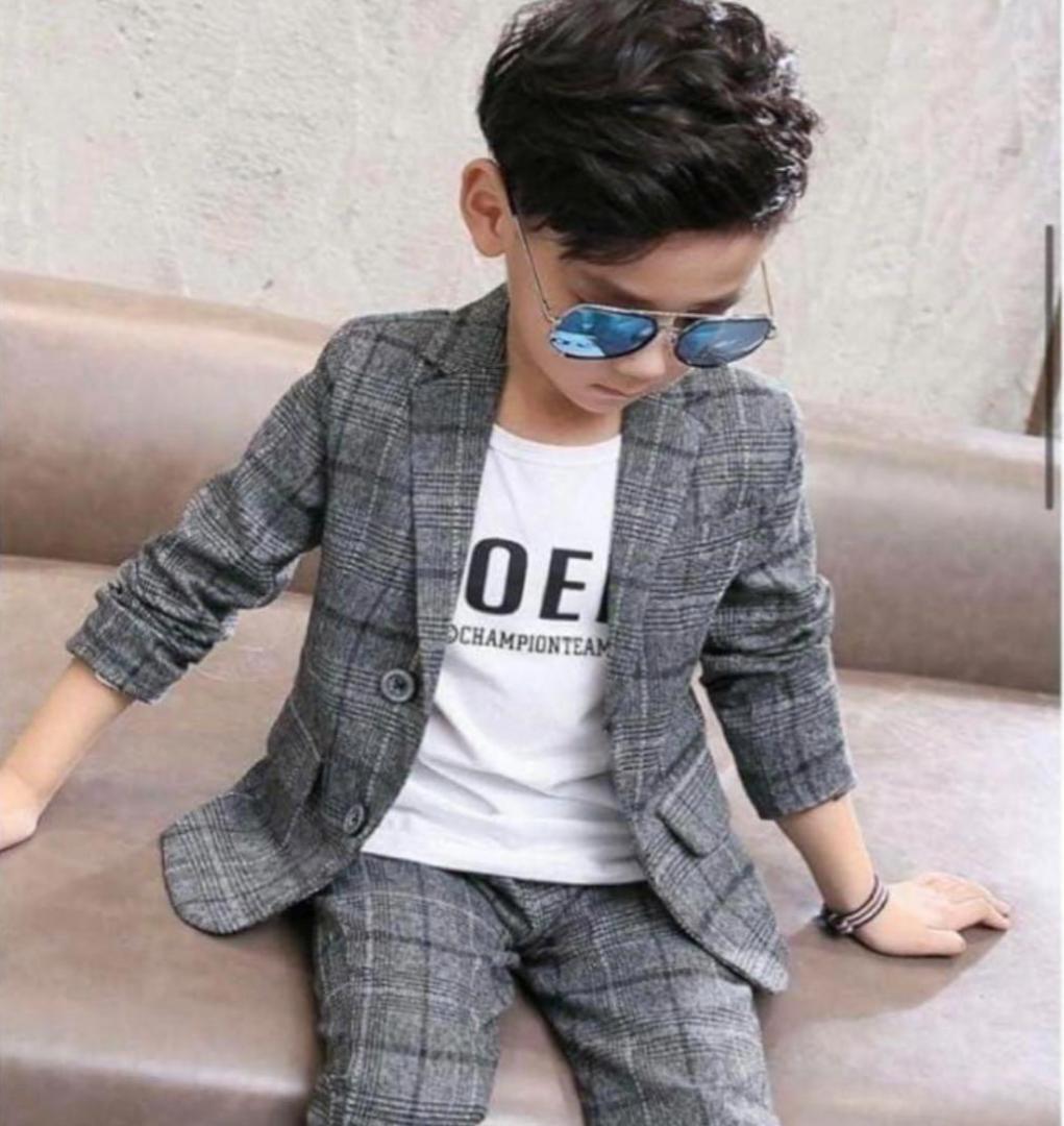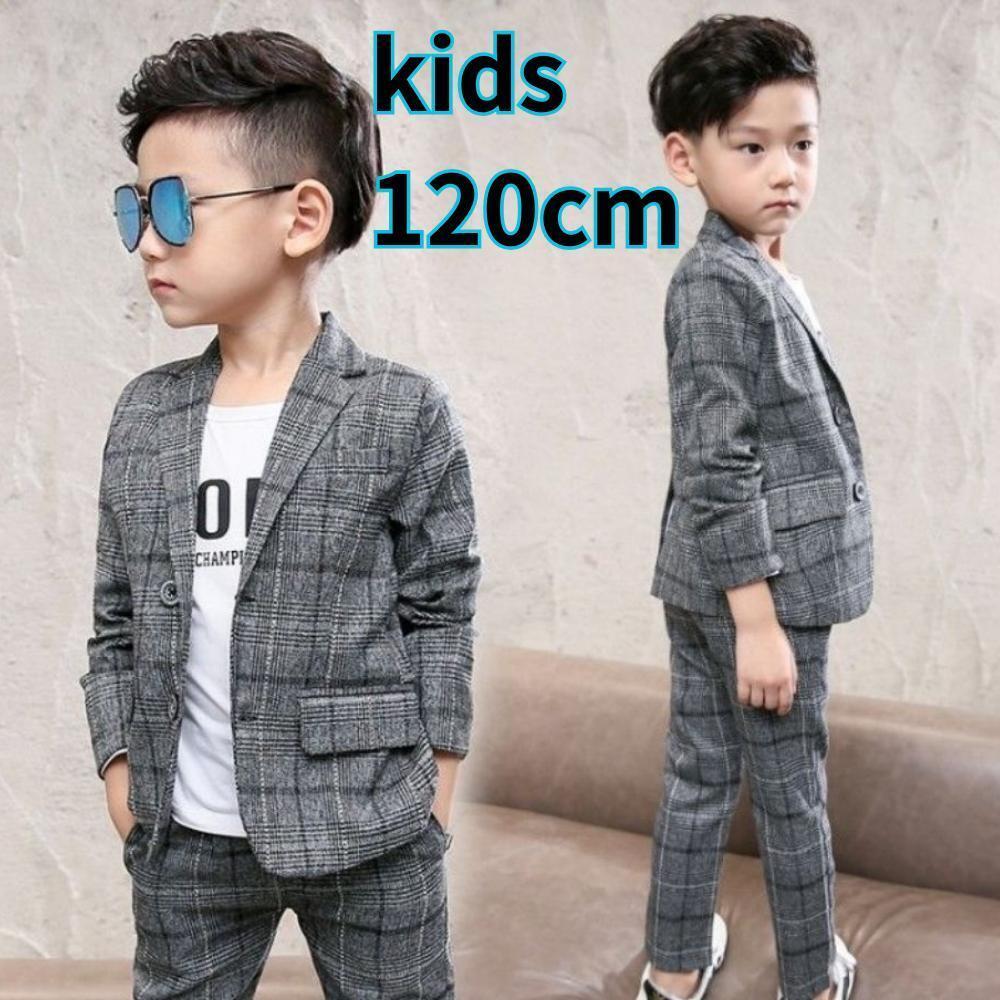 飽きのこない小さめ格子柄のシックなデザイン!クールなボーイズフォーマルウェア♪ 流行りの二つボタンでオシャレ度UP!