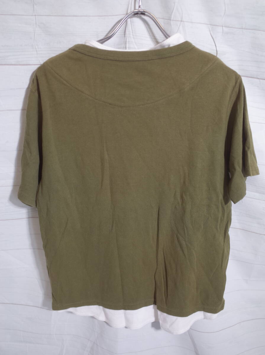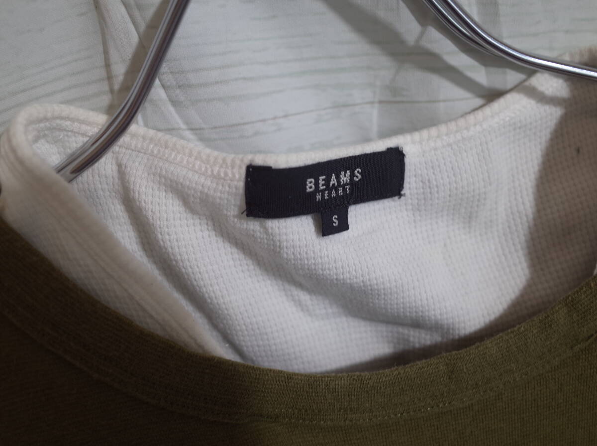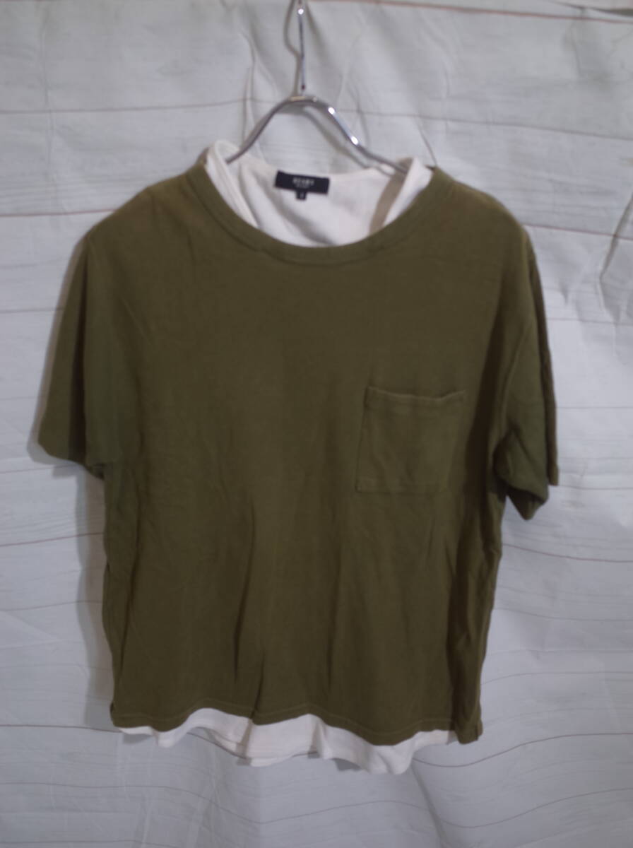 メンズ pm927 BEAMS HEART ビームスハート 重ね着風 半袖 ポケット Tシャツ S カーキ系 ネコポス可