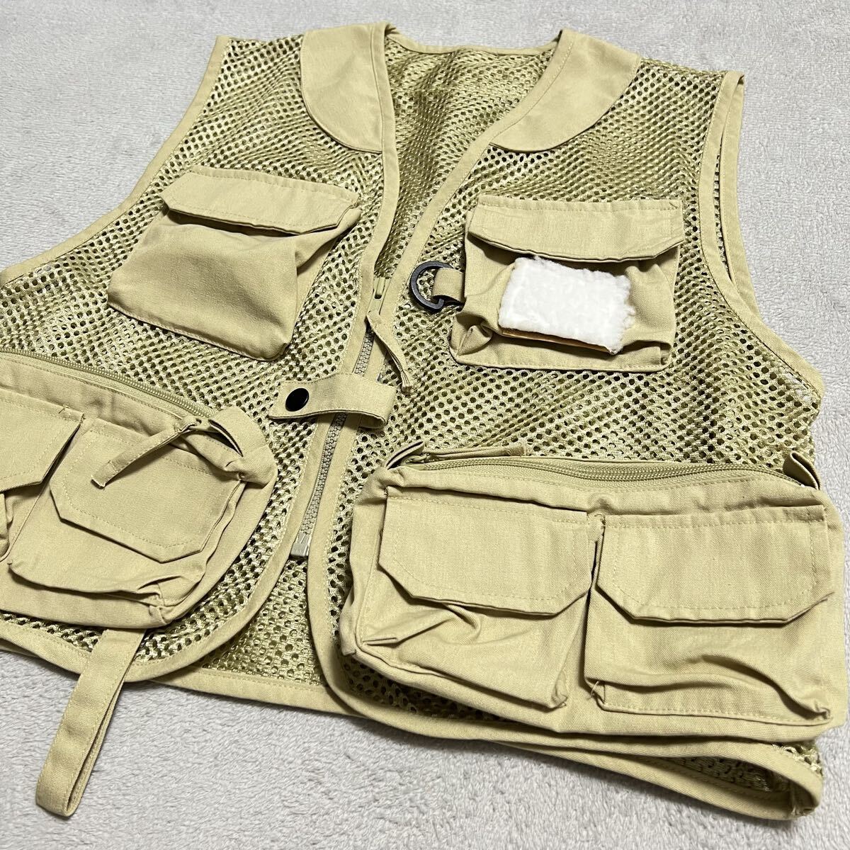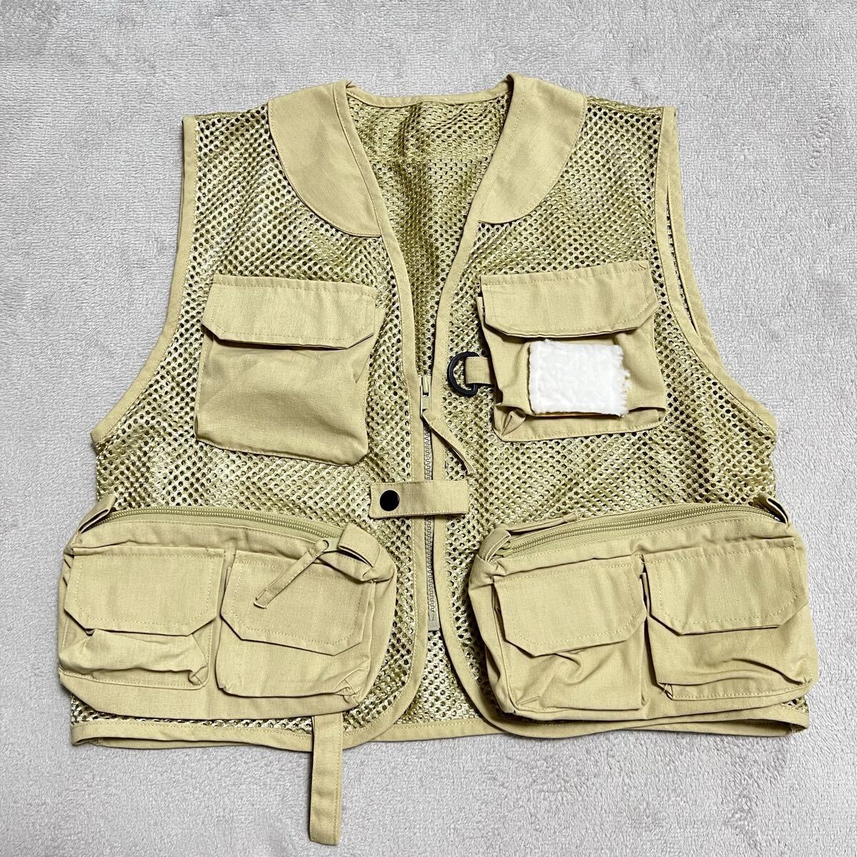 ★格安★ノーブランド フィッシングベスト メッシュ ハンティングベスト メンズ ベージュ サイズM ユーティリティ R-8070