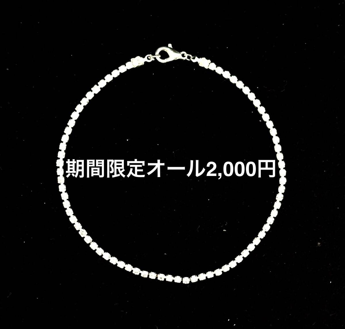 セール中 アンクレットシングルチェーン、ラインストーン(小粒2㎜)、シルバー