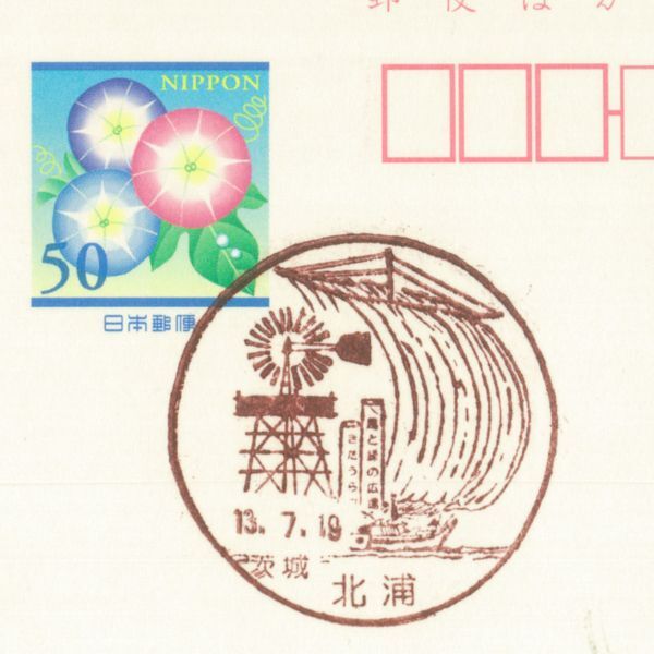 風景印☆初日☆茨城・北浦・H13.7.19・霞ヶ浦の帆引船・かもめーる