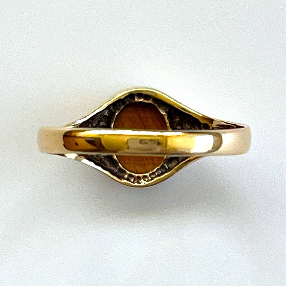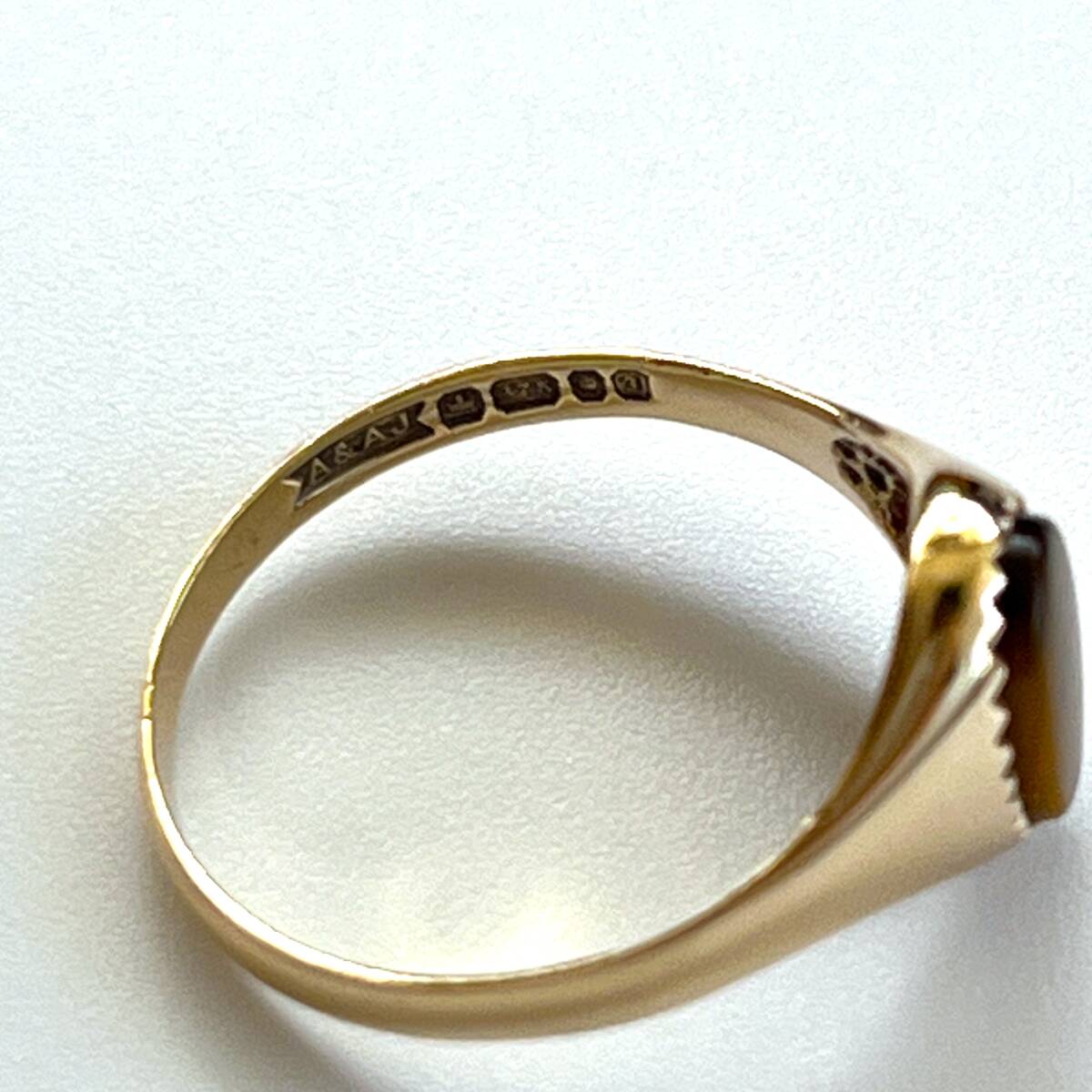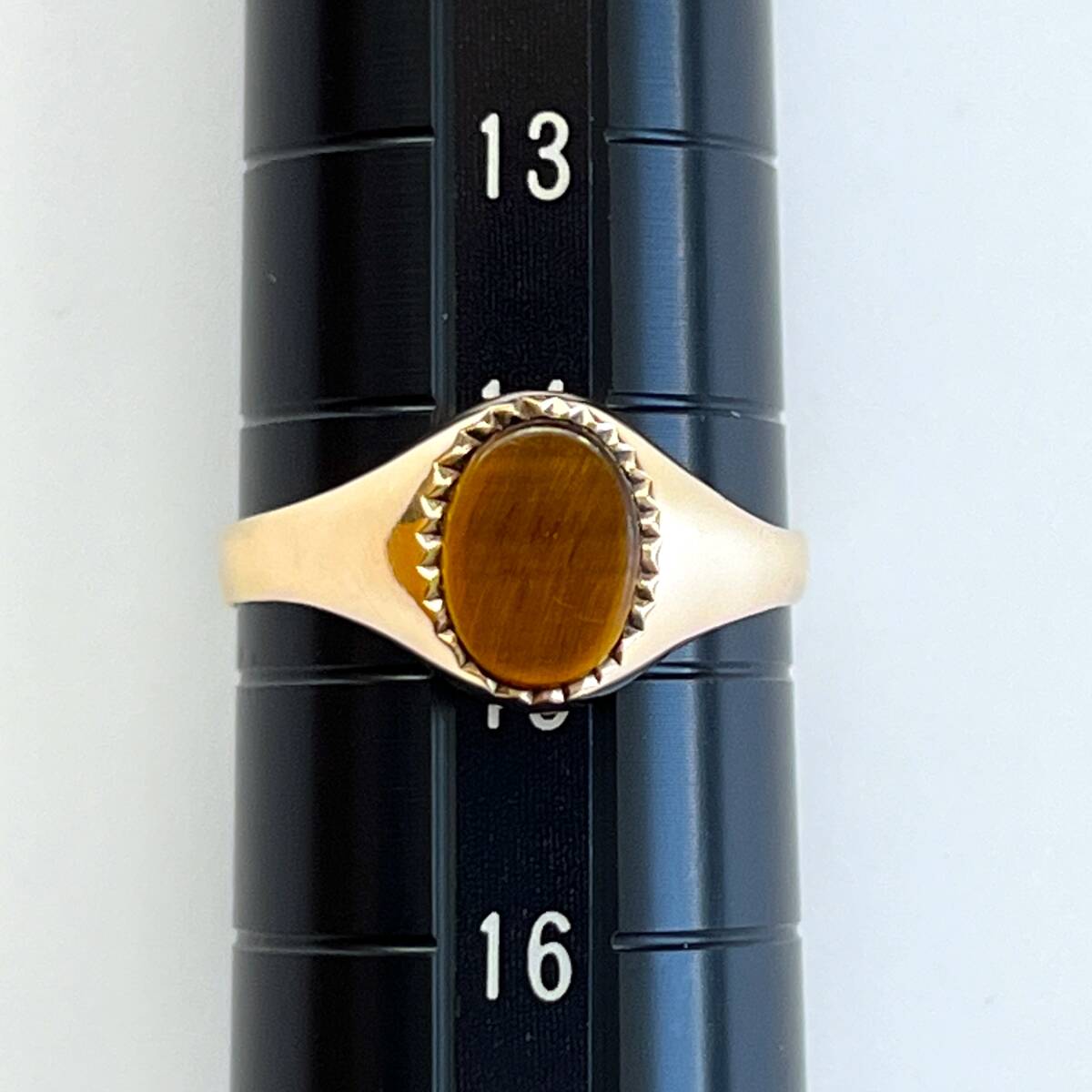 【Vintage】シグネットリング 9金 Gold ゴールド 375 9ct タイガーアイ Tiger Eye 英国 イギリス製 MADE IN UK 14.5号 1.5g 1980年