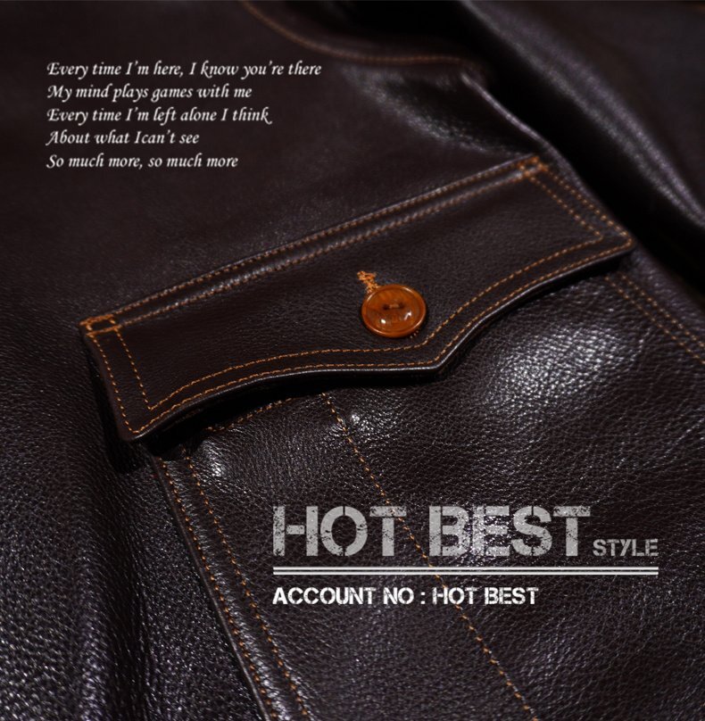 カウハイド(牛革)を使用したこのジャケットは、1.3mmの厚みがあり、非常に耐久性が高く、長年の使用にも耐える丈夫な作りとなっています。