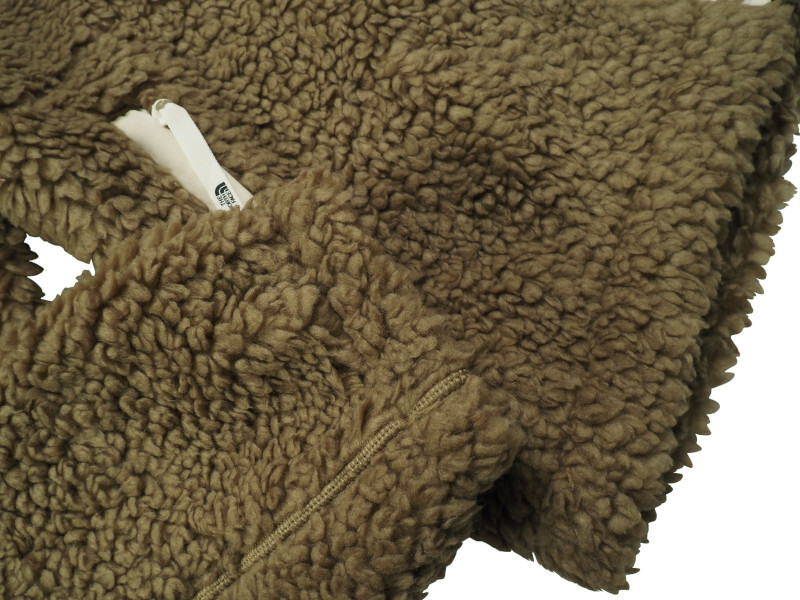 毛並みが豊かでボリューム感のあるシェルパ素材を用いたバルキーボアフリースです。裏地を配し、フリースの弱点である風に弱い特性をカバー。