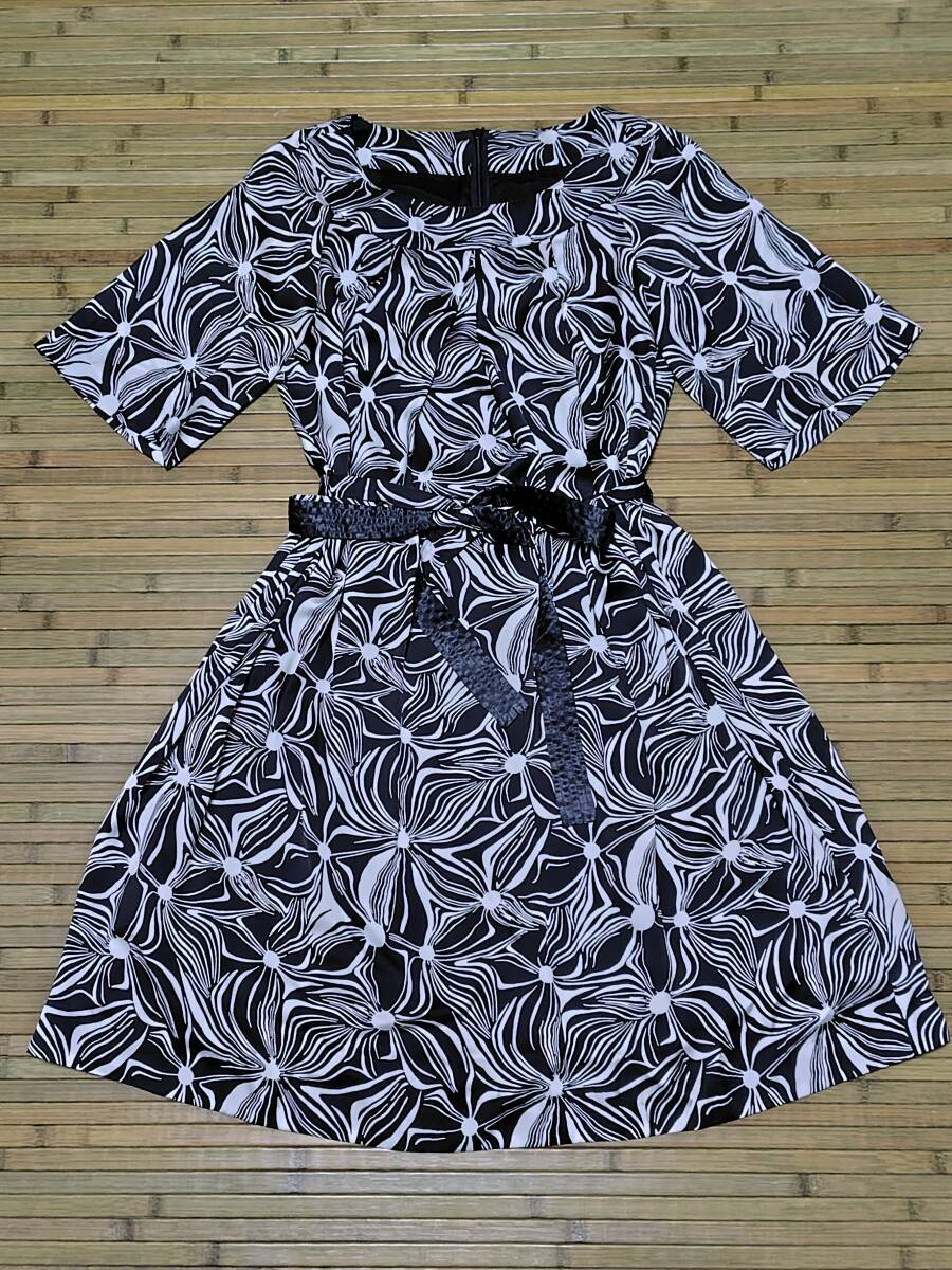 04*【中古】*K.T KIYOKO TAKASE 上品デザインワンピース モノクロ 9号 送料無料