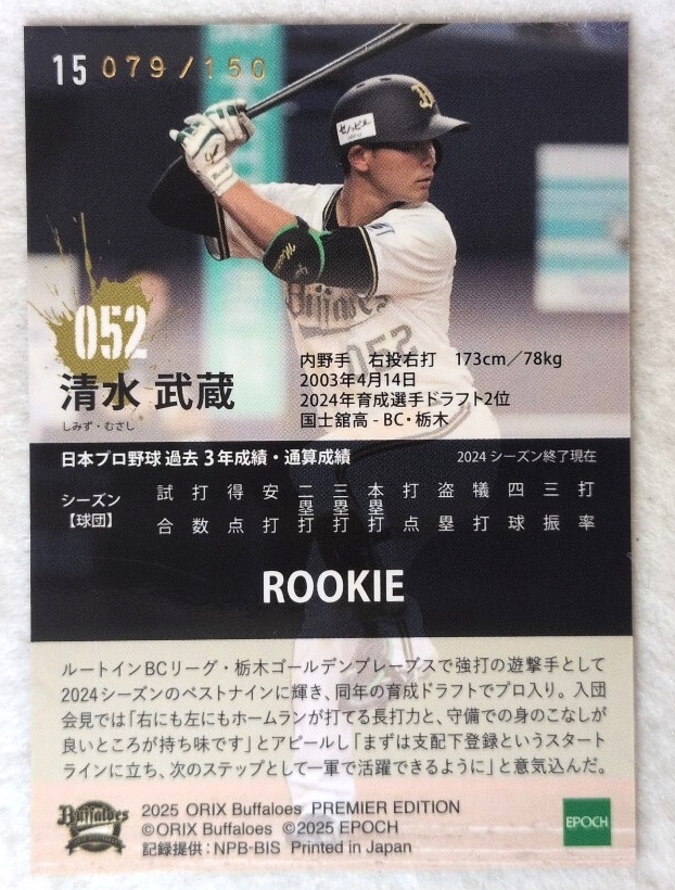 ★150枚限定★ 清水 武蔵 オリックスバファローズ 79/150 EPOCH PREMIER 2025