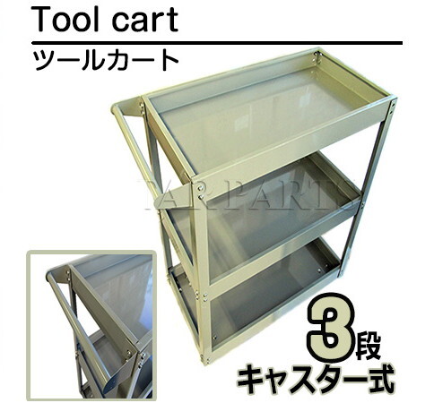 3段 ツール カート キャスター付き 工具 台車 ツール ワゴン ボックス 工具箱 入れ 収納 移動式 ワーキングカート 灰 グレー