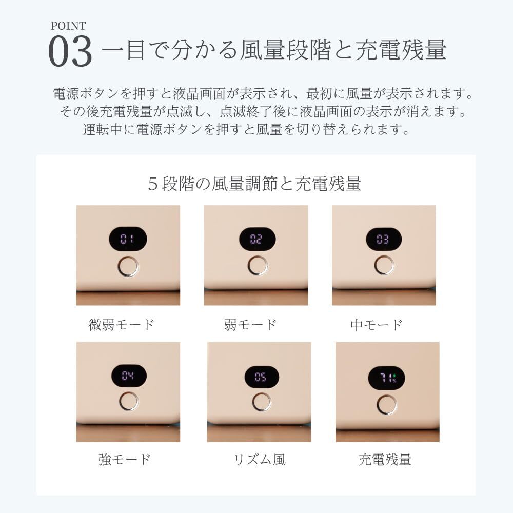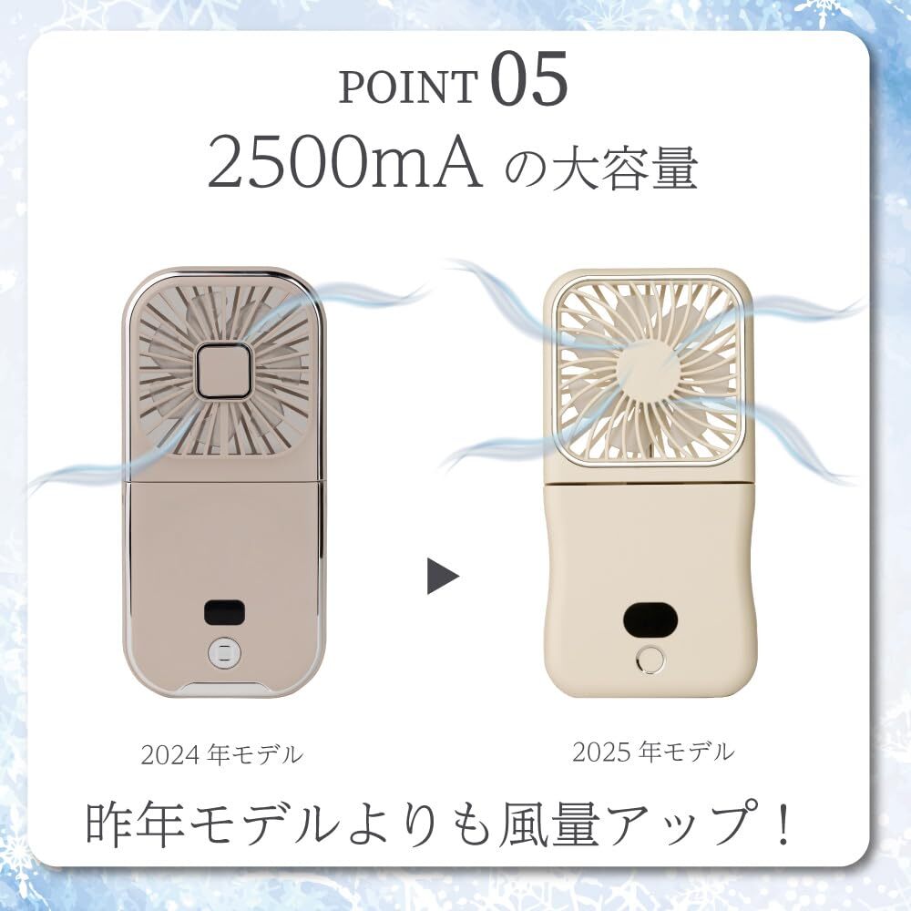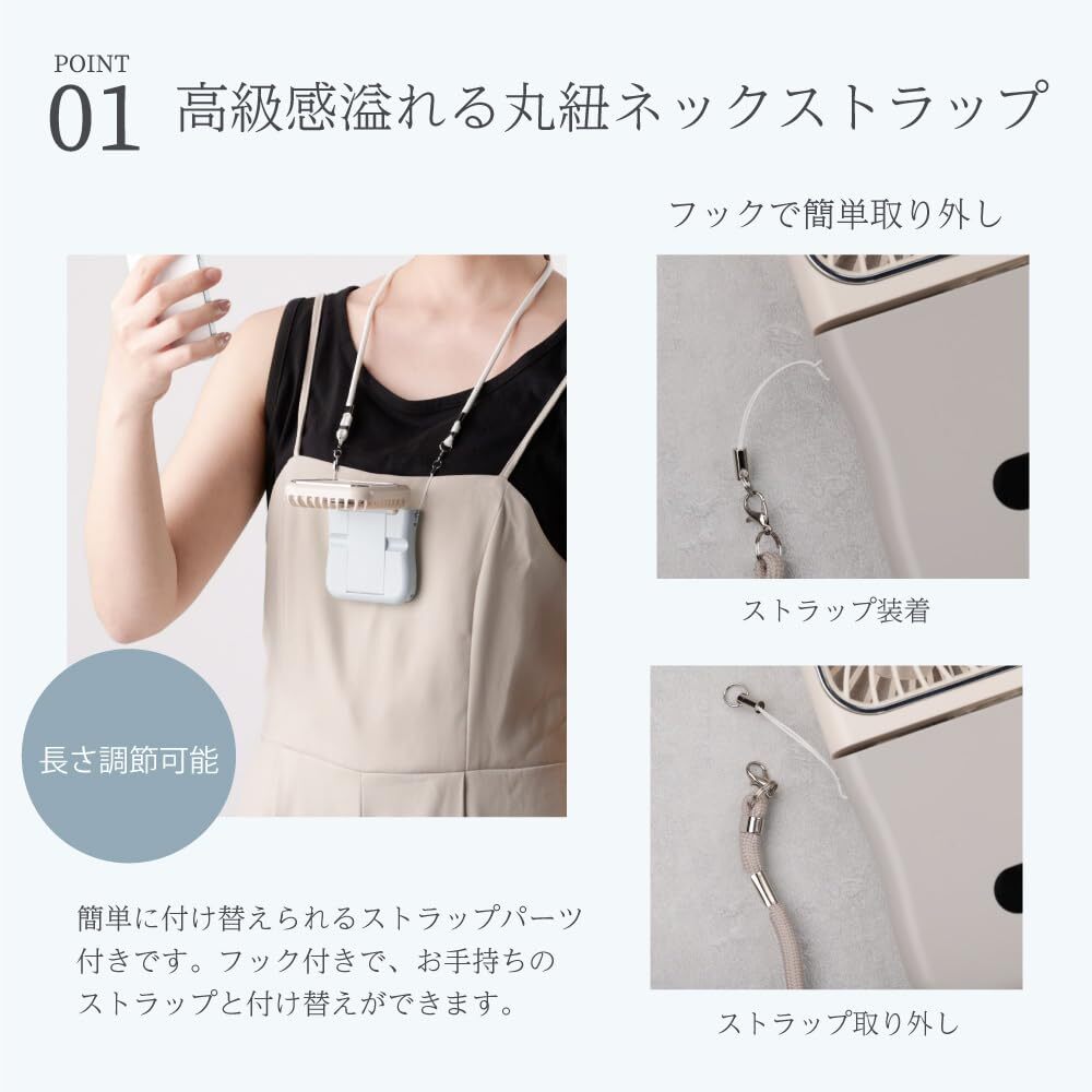 | ■■■■■■■■■■■□□□■■■■■■■■■■■□□□■■■■■■■■■■■□□□■■■■■■■■■■■□□□ (^-^*)/★私のオークションにようこそ★(^-^*)/ お色は画像1のベージュでございます。 2025年8月購入証明書ありますのでメーカー受けられます。 万が一故障などの際は落札者様よりメーカーご連絡して頂き保証受けられてください。 5WAY SMART HANDY FAN ・可愛い5色のカラー展開 ・付け替え可能なネックストラップ付き 軽量で持ち運びも便利なコンパクトサイズなのに、大風量を実現したハンディファンです。暑い夏の日も、どこでも快適な風をお届けします。 フル充電で11時間使用可能! ・誤作動防止の長押しON/OFF ・ネックストラップ付き ・スリム設計 POINT1 高級感溢れるネックストラップ 簡単に付け替えられるストラップパーツ付きのネックストラップです。このパーツがあることによってお手持ちのストラップとも簡単に付け替えることができます。ネックストラップは長さ調節可能でお好みに合わせてお使いいただけます。 POINT2 5WAYの使用方法 ①手持ち 手にフィットするくぼみ付きで持ちやすい ②卓上 角度調節可能でお好みに合わせて涼める ③首掛け ネックストラップを使って、ハンズフリーに ④スマホスタンド 料理中や動画を見ながら涼める ⑤モバイルバッテリー 外出先での手荷物を減らせる POINT3 一目でわかる風量段階と充電残量 電源ボタンを押すと液晶画面が表示され、最初に風量が表示されます。その後充電残量が点滅し点滅終了後に液晶画面の表示が消えます。 POINT4 スリム設計で持ち運びに便利 約140gとバナナ1本よりも軽くなっています。カバンに入れても邪魔にならないサイズと重さです。 POINT5 2500mAの大容量 新しいハンディファンは、昨年モデルに比べて風量が大幅にアップし、さらに強力な風で涼しさを提供します。持ち運びに便利なサイズながら、暑い季節にも快適に過ごせるパワフルな冷却性能を実現。アウトドアや屋外での使用にぴったりな、頼れるアイテムです。 | ||