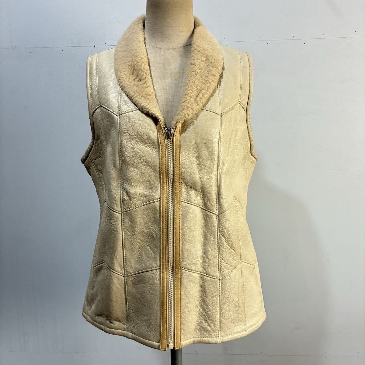 Pacific Lamb skin ニュージーランド製 ムートンジャケット ジップアップ ノースリーブコート 毛皮ベスト 切り替え【送料一律/同梱可能】Kの出品です。
