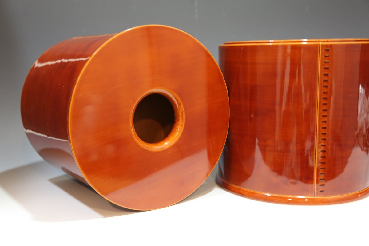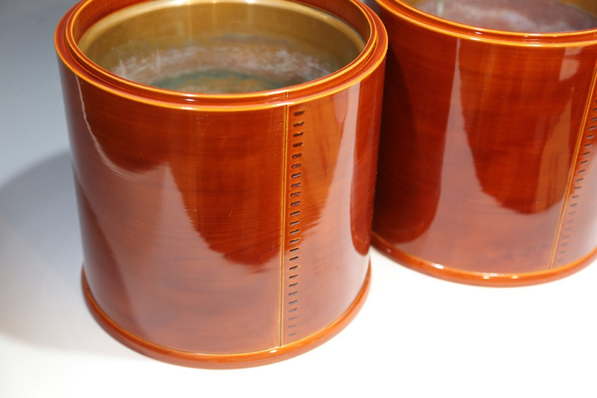 ★★★ アンティーク 木製 春慶塗 締め丸火鉢 一対 ① ★★★ 118