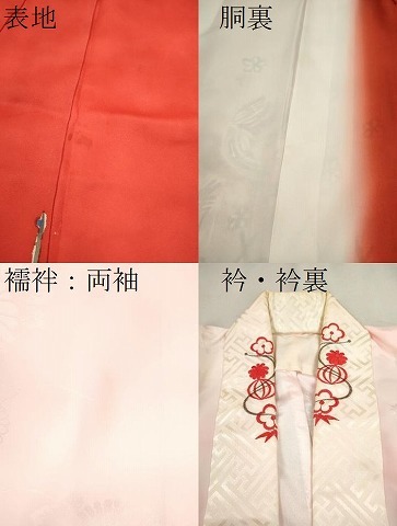 【祝着】 身丈 127.5cm(肩から) 裄丈 51.5cm(肩上げ 2.5cm) 袖丈 69cm 縫込み 2.5cm 袖幅 31cm 前幅 20.5cm 後幅 27cm 着物縫いこみ 内揚げ 0cm (腰上げ 0cm) 裄 お袖側 約3cm 身頃側 約8cm 【長襦袢】 身丈 100.5cm(肩から) 裄丈 51cm(肩上げ 2.5cm) 袖丈 68cm 縫込み 3.5cm 袖幅 30cm 前幅 21.5cm 後幅 26.5cm 着物縫いこみ 内揚げ 0cm (腰上げ 0cm) 裄 お袖側 約6cm 身頃側 約6.5cm 【帯】 長さ408cm 幅 26cm程 《 サイズについてはこちら 》 |
