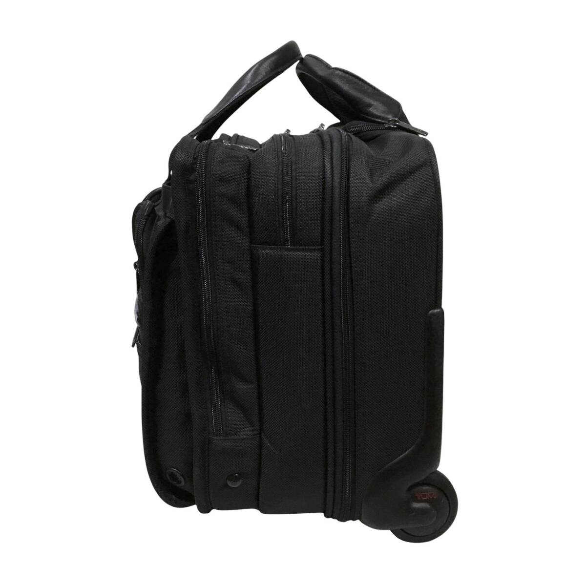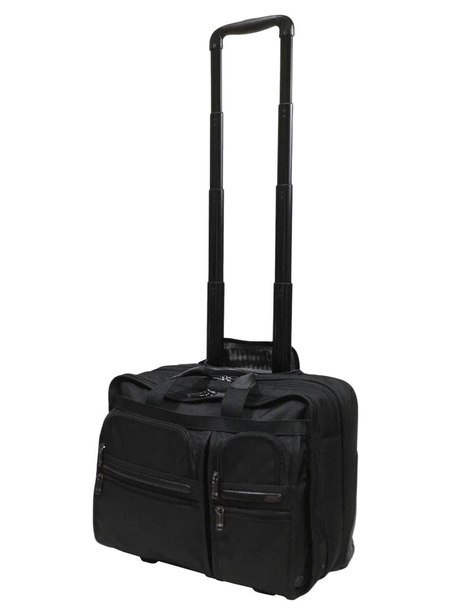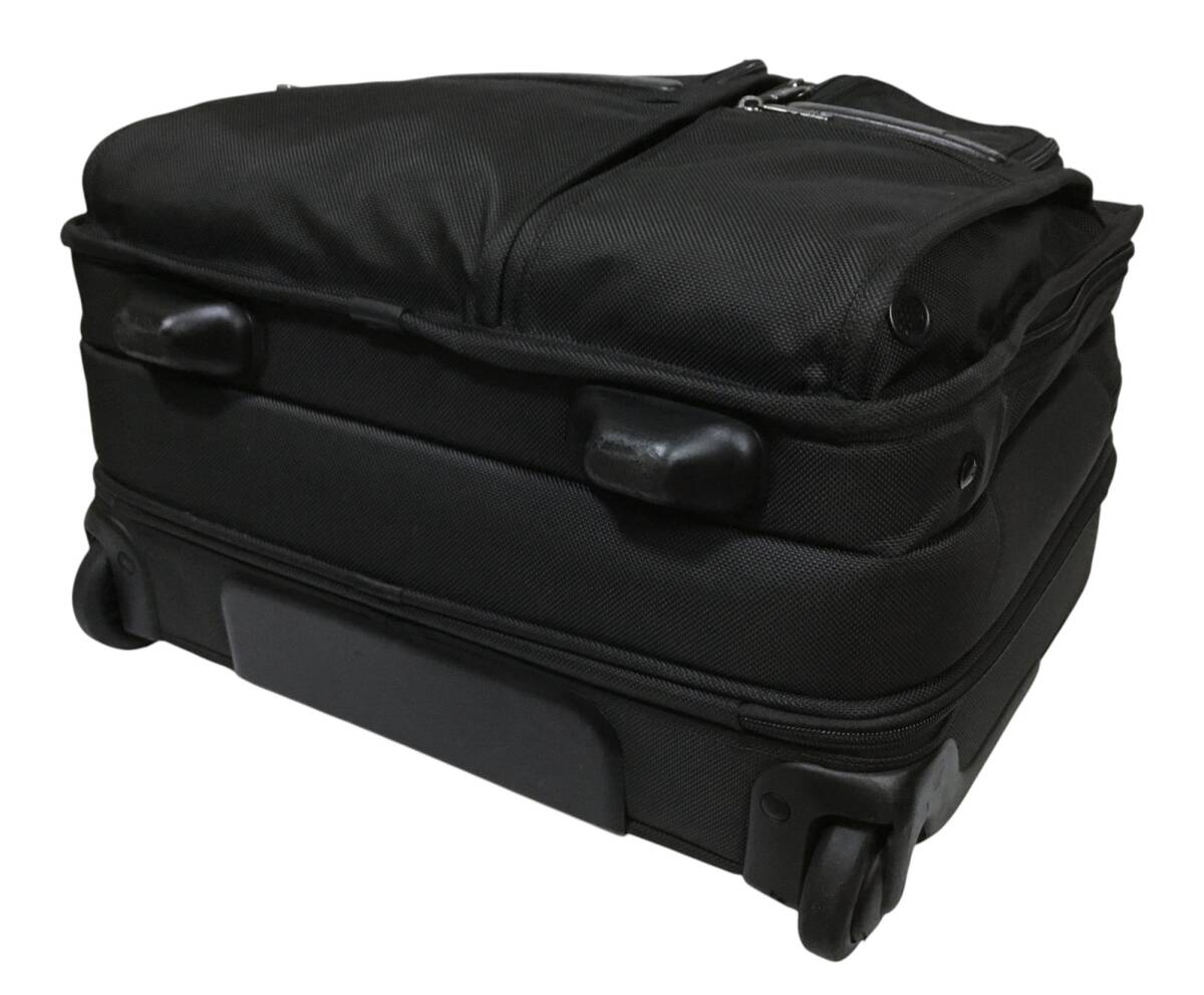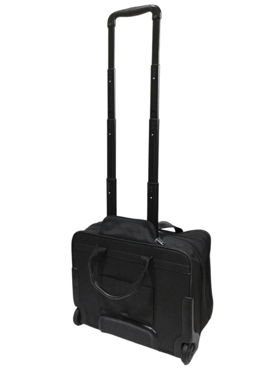 特徴:2WAY収納ハンドルバー付きスーツケース 2ローラータイプ 外装:ZIPポケット × 4(内側ZIPポケット、キーリング、フック、ゴム製ホルダーポケット大 + 小、ペンホルダー × 2、カードポケット × 2あり) 内装:メイン3部屋のつくり、ノートPC用クッションケース、ドキュメント用小部屋 × 3(ゴム製オープンポケット × 3付、こちらの部屋は180度開きます。)、側面ZIPポケットあり 付属品:ノートPC用クッションパッド(ベルクロテープ留め)付き 背面にはスーツケースに取り付けが可能なホルダーが付いております。こちらは底部プラスティック部分、タイヤ周りなどに少々細かなコキズなどあるものの、全体的に使用感の少ないもので、キレイな状態のものとなり、新品に近い感がございます。