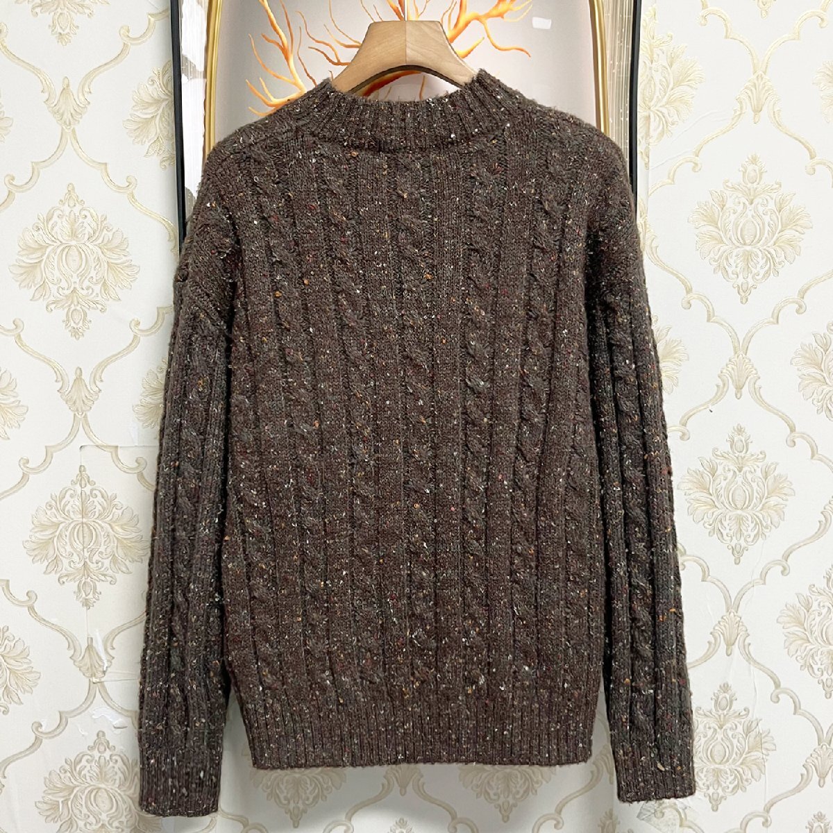 個性EU製&定価4万◆UABONI*Paris*セーター*ユアボニ*パリ発◆ウール混 ニット 保温 厚手 伸縮性 総柄 ゆったり 人気 トップス お出かけ 秋冬 XL/50