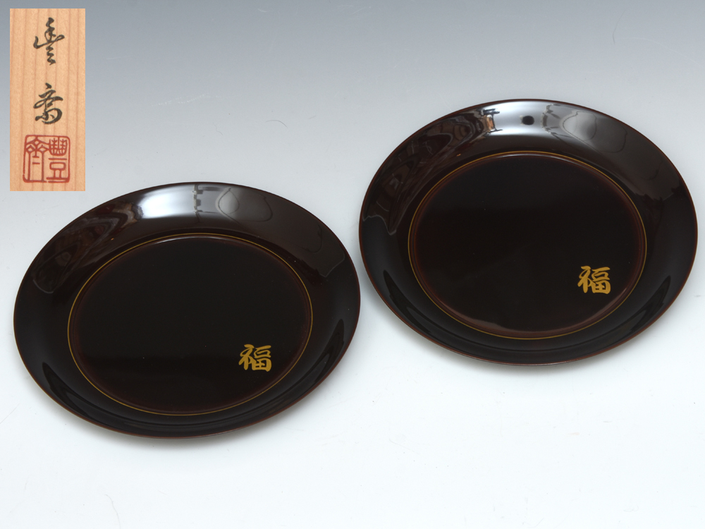 豊斎(造)福印 溜塗菓子盆 一対 菓子器 共箱 木工芸 漆工芸 漆芸 茶道具 懐石道具 |