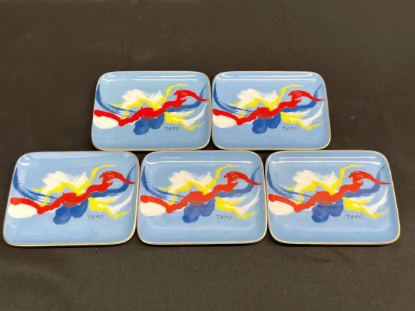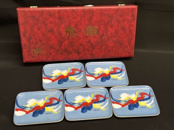 【M599】新品 未使用 ケース付き TARO OKAMOTO 岡本太郎 飛翔 絵皿 角皿 菓子皿 5客揃 陶器 食器 プレート インテリア アート 美術 芸術 b | ||