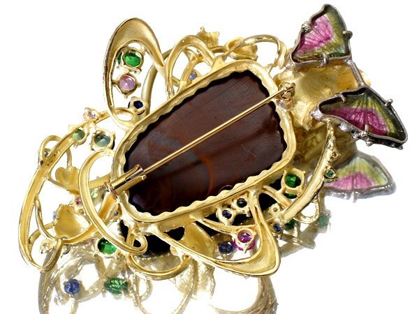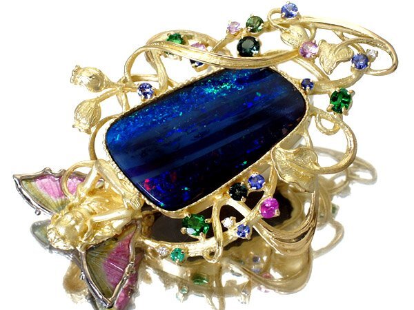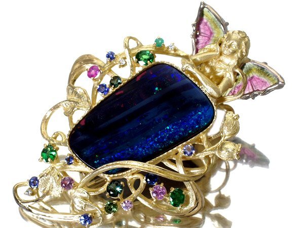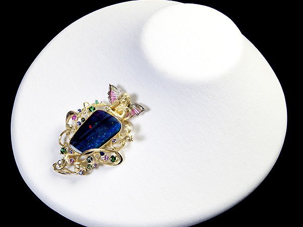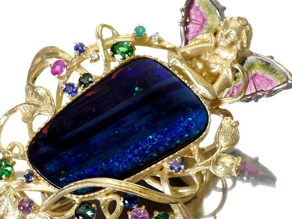 極上品!美しい天使と植物モチーフに、極上の天然ボルダーオパール20.00ct&天然バイカラートルマリン・天然タンザナイト・天然グリーンガーネット・天然ピンクサファイア・天然インディゴライトトルマリン・天然パライバトルマリン・天然ダイヤモンドをセッティングした、超高級K18YG&Pt900ブローチ兼ペンダントヘッドジュエリーを1円から特別大放出させて頂きます!
