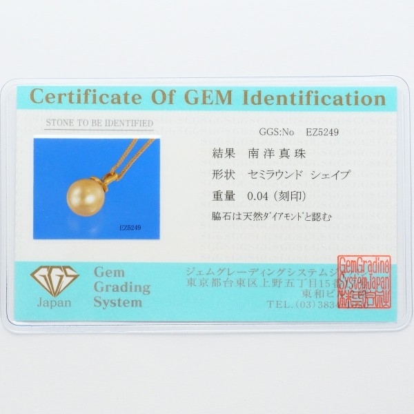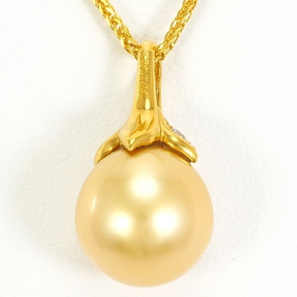 【素材】 K24/イエローゴールド 【石目】 南洋真珠 天然ダイヤモンド 0.04ct 【総重量】 約4.8g 【サイズ】 トップ:全長 約19×10mm(トップとチェーン取り外し可) チェーン:全長 約42cm(フリーアジャスター) 【付属品】 カード式鑑別書(ジェムグレーディングシステムジャパン) 【商品の状態】 新品仕上げ済み 【コメント】 ペンダントの合成ゴールデンサファイアは、透明感のある鮮やかな黄金色が際立ち、カットの美しさによって光を反射するたびに豊かな輝きを見せます。周囲にセッティングされた天然ダイヤモンドがさらに存在感を高め、上品さを添えています。 | |