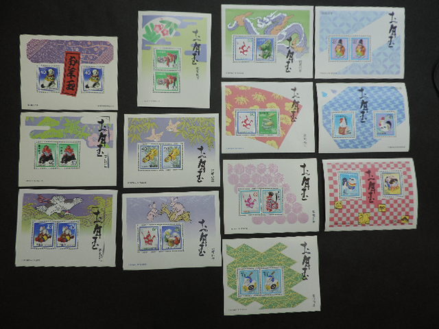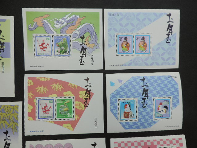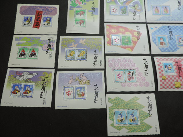 ★お年玉 年賀切手 13年分★  昭和57年~平成6年・13年分  小型シート13枚 1173円分  新品・未使用