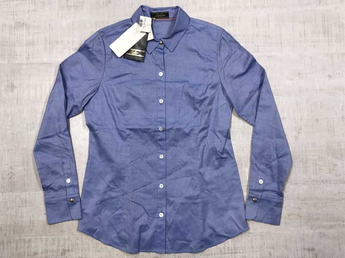 新品タグ付き レリアン Leilian トラッド クラシック フォーマル 長袖 ドレス シャツ レディース 日本製 イタリア製生地 綿100% 7 青 です。
