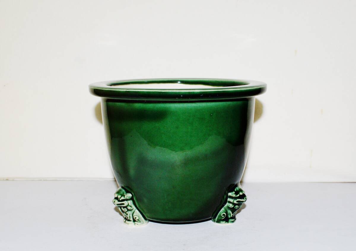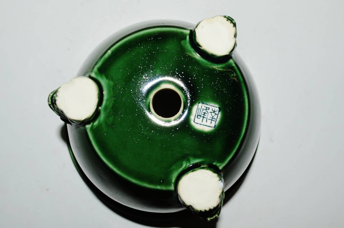 尾張の織部釉の獅子足外縁丸懸崖形の約15.5㌢の鉢