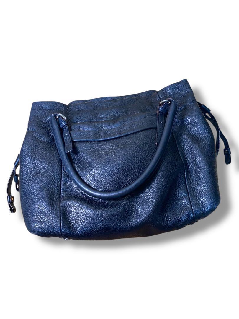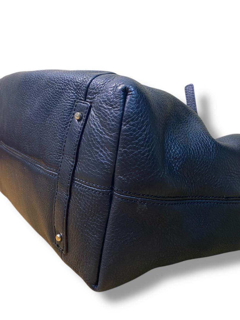 高品質なレザー製の黒いトートバッグ、シンプルでスタイリッシュなデザイン。
