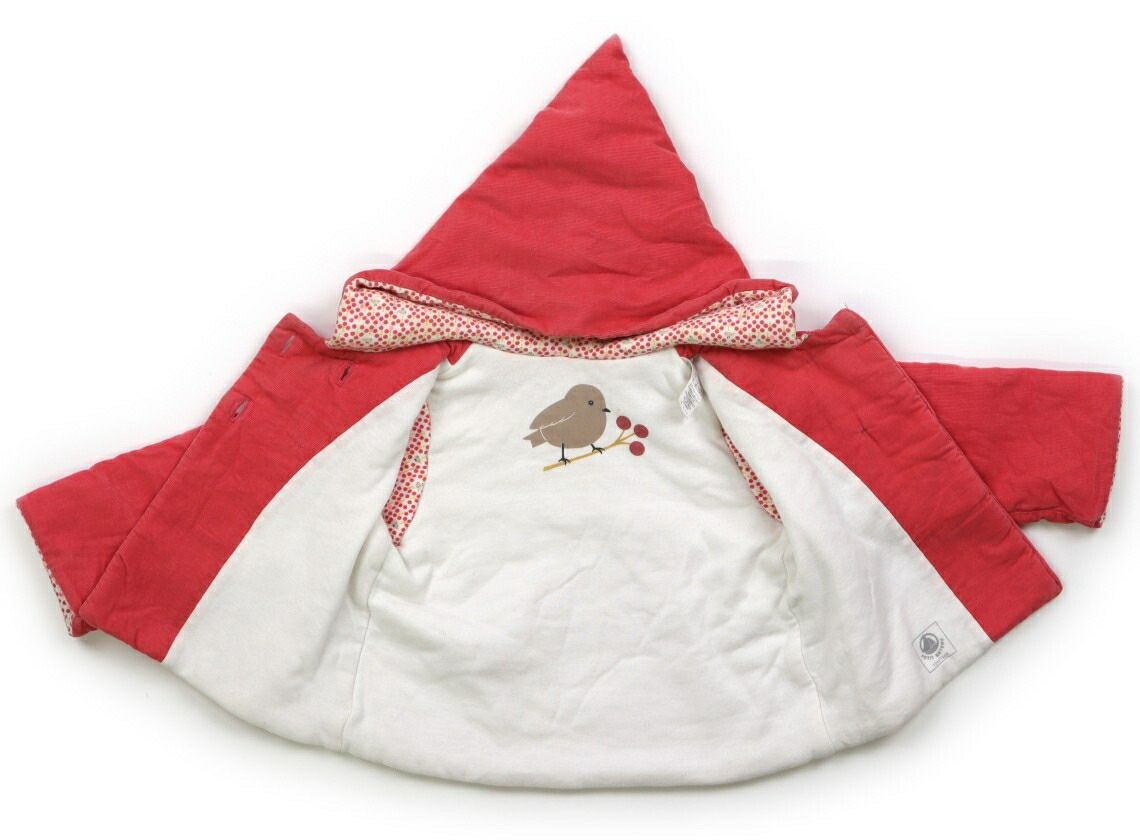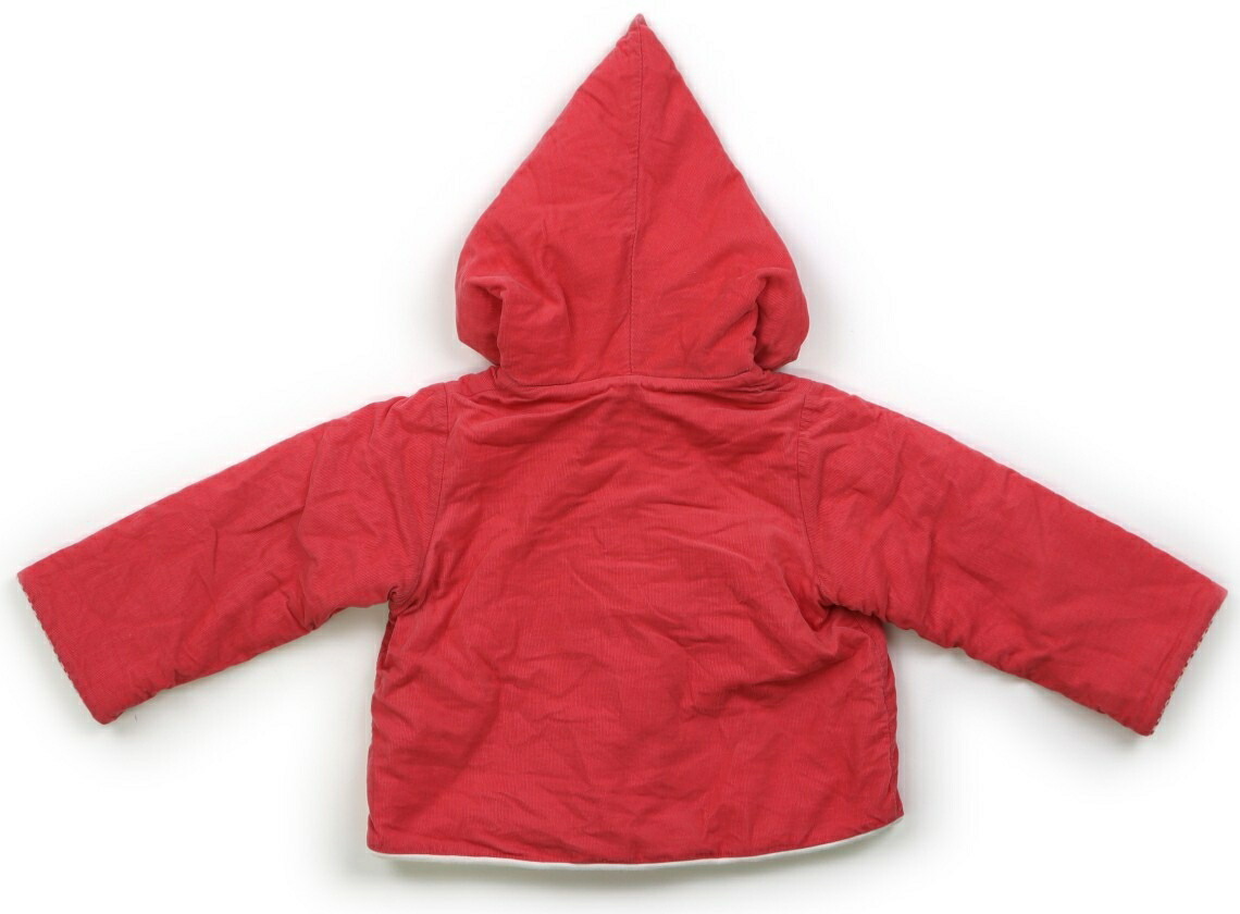 12m/74cmサイズ表記。コーデュロイ生地で、中綿入り。フードは縫い付けです。色褪せ、首周りに黄ばみ汚れが見られますが、まだまだ活躍してくれそうです。