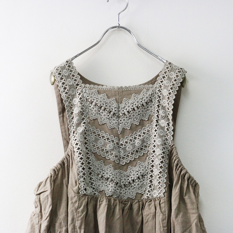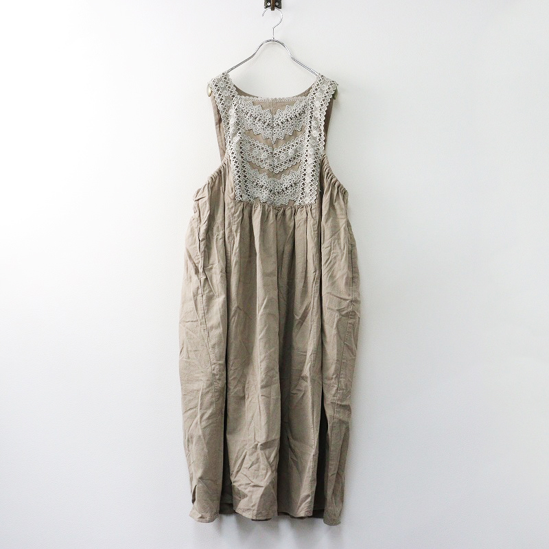美品 サマンサモスモス Samansa Mos2 SM2 ノースリレースワンピース F\ベージュ 胸元レース ノースリーブ ドレス【2400014617597】