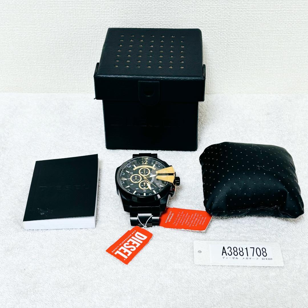 【美品】 ディーゼル DZ-4338 ブラック 動作良好 腕時計 y2k DIESEL ディーゼル メガチーフ DZ4338 ブラック 黒 クロノグラフ デイト