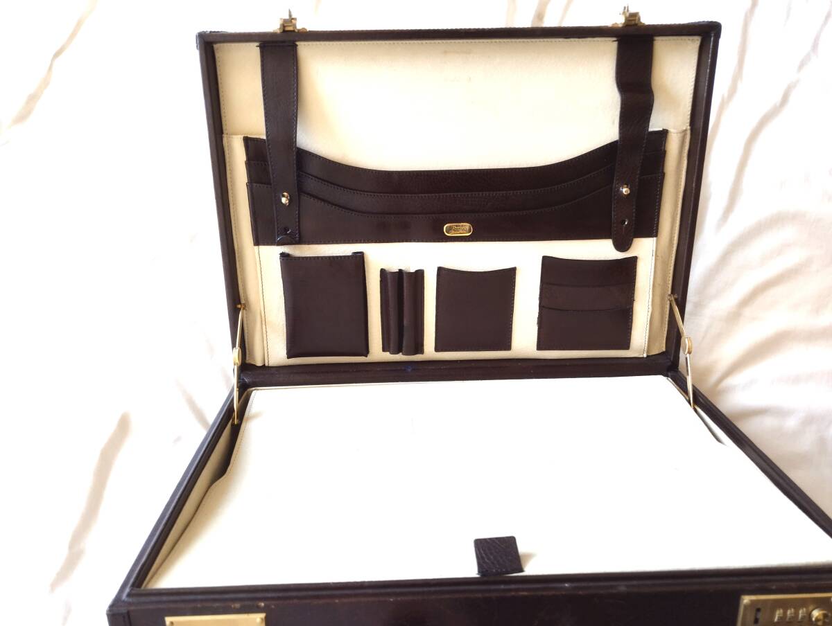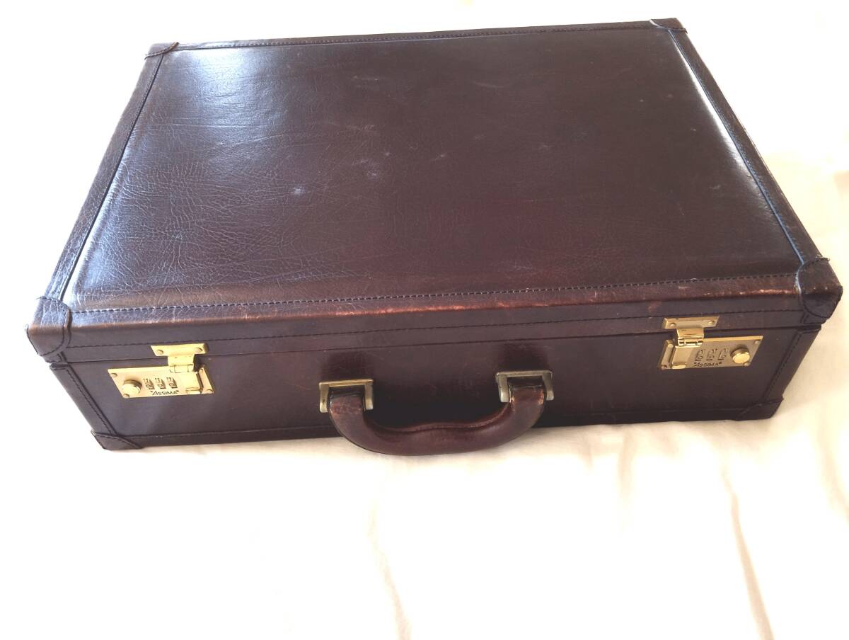 Vintage Assima社のダイヤル式ロック付きのブラウンレザーのアタッシュケース