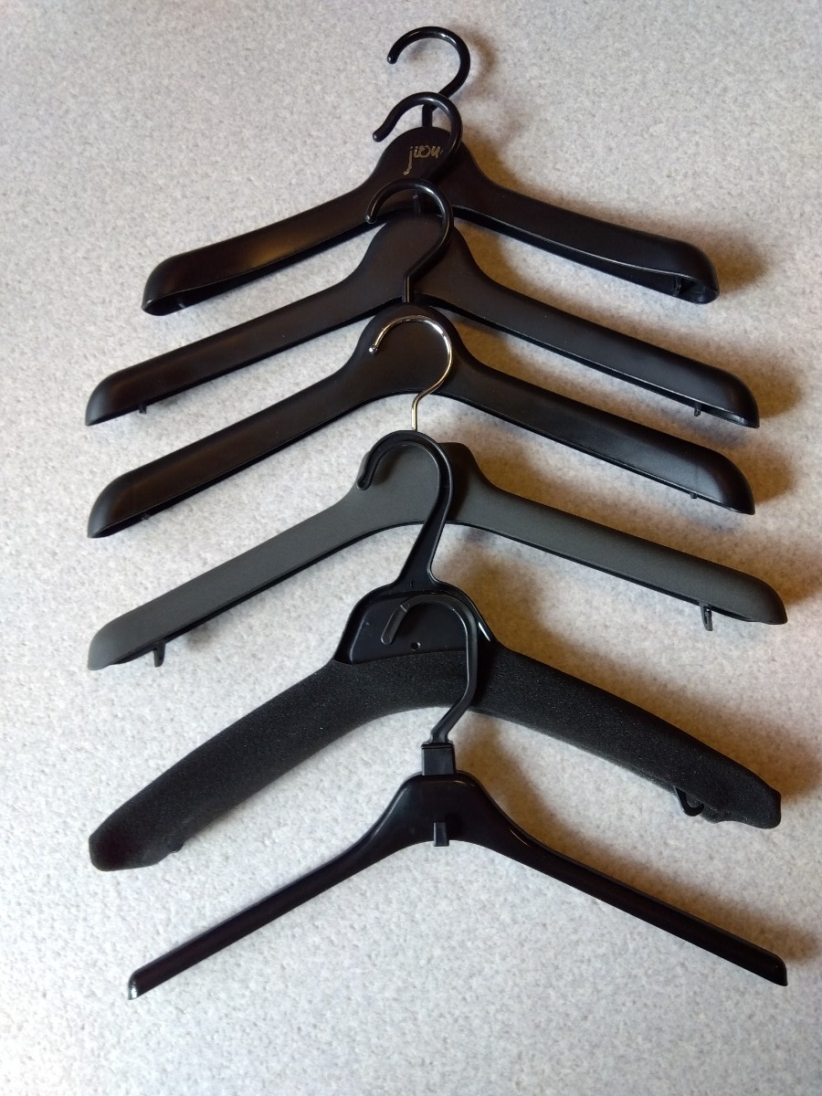 ジャケット等の肩のラインをキープできるタイプも薄型ハンガーもあります。