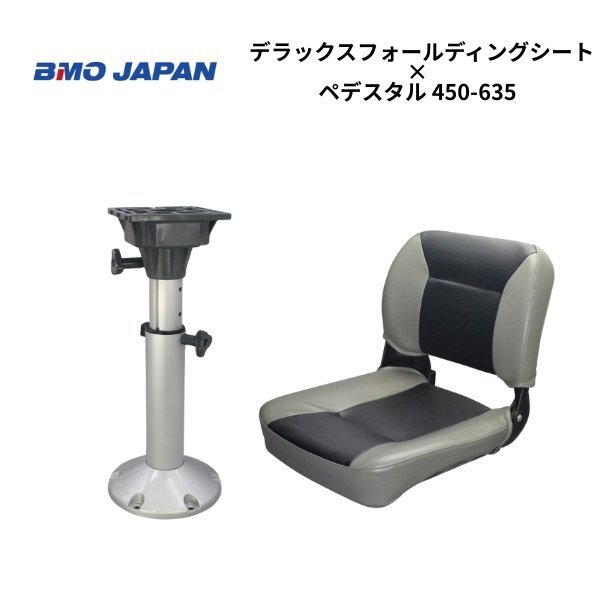 ・・・シート・・・ 品名:BMOジャパン デラックスフォールディングシートⅡ グレーブラック 品番:30C0053 サイズ:W455×D450×H440mm 背もたれの厚み:50mm 座面高さ:110mm カラー:ホワイト/ネイビー 表面生地:UV対応PVレザー 底部材質:マリン対応PP製 付属品:取り付け用ビス 4本(M6) ※ヒンジ部、底面は強化樹脂で高耐久性仕上げ ・・・ペデスタル・・・ ■品番:30C0068 ■天面板厚:170x170mm ■天面サイズ:10mm ■材質:アルミ/樹脂 ■支柱径: Φ75mm/Φ60mm ■底面サイズ:Φ230mm ■高さ調節幅:450-635m ■重量: 2.9kg ★コメント 最高の座り心地を提供してくれるデラックスシート 特に長時間座っている必要のあるボート操船では座り心地は最重要 従来タイプよりコンパクトになりました。高級感のあるレザー調の最高級モデルです ヒンジ部分や底面部分が強化プラスチック製のため、錆や腐食の心配がありません 各社ペデスタルとの相性も抜群 弊社AFボートブランドとも共通になります |